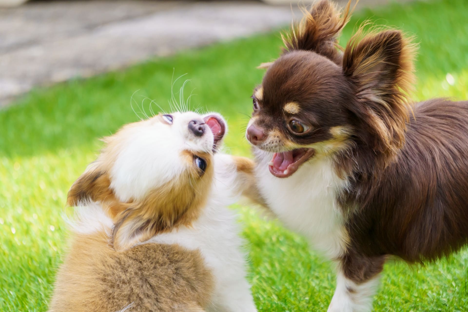 他の犬に吠える場合も、その心理は様々です。見知らぬ犬への警戒心や、過去に怖い経験をしたことによる恐怖が原因となることがあります。一方で、「遊びたいのに近づけない!」という欲求不満や、リードで繋がれていることへのフラストレーションが吠えにつながることも。