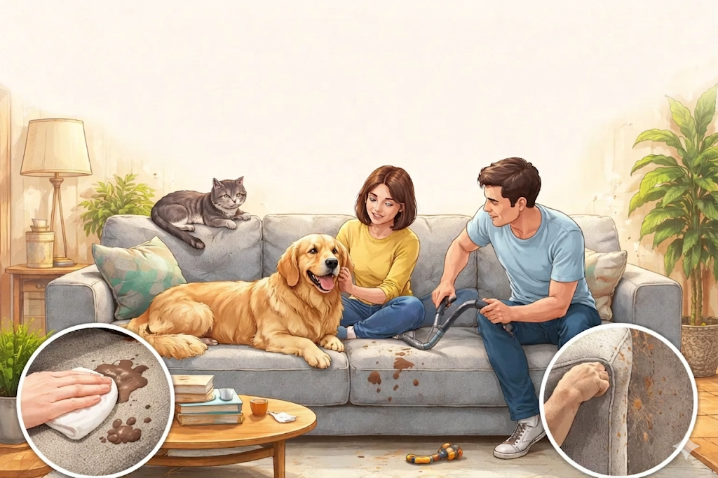 第二は、清掃効率の向上だ。毛玉ができにくい特性は、単に見た目の問題ではなく、掃除機の吸引力を維持する。通常の布生地では、絡まった毛がファンを詰まらせ、掃除効率が落ちるが、対応生地では毛が表面に留まりやすく、吸引が容易になった。また、撥水処理(多くのペット対応生地に施されている)により、よだれや水のシミが深部に浸透しにくく、表面の拭き取りで大部分の汚れを処理できるケースが増えた。