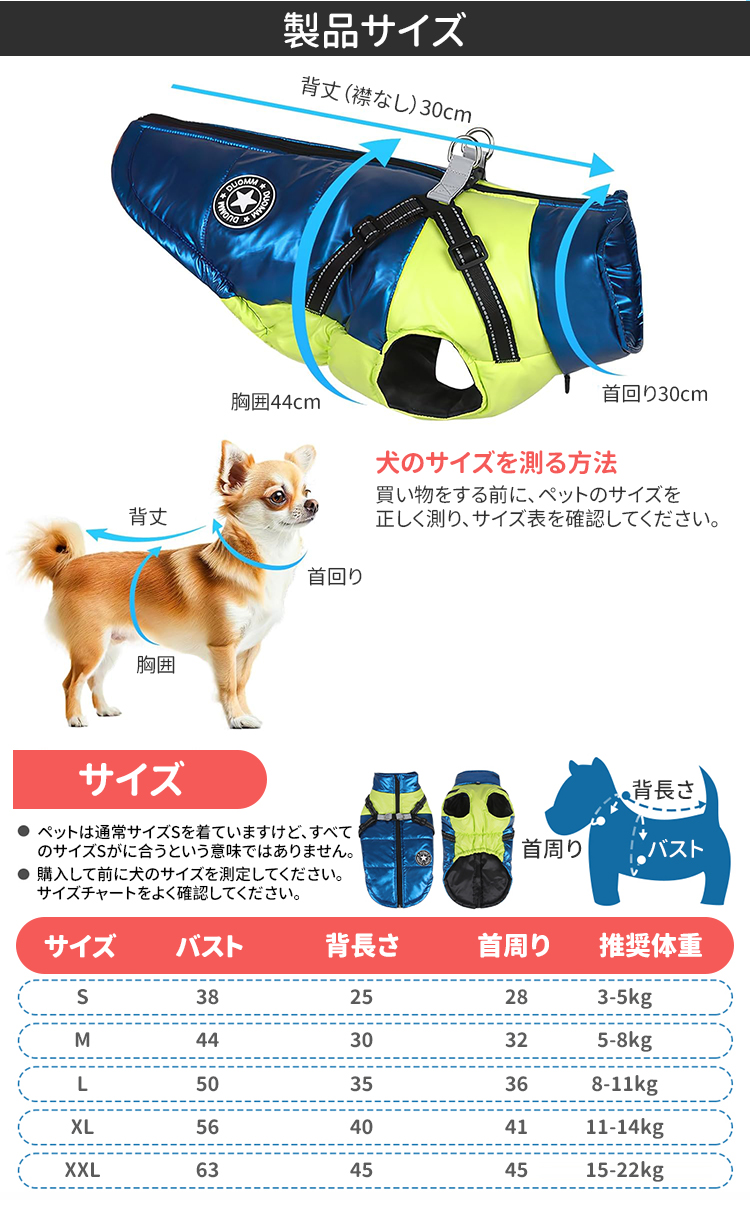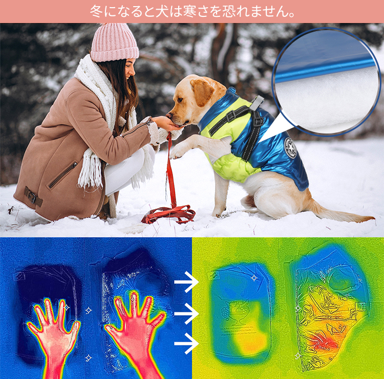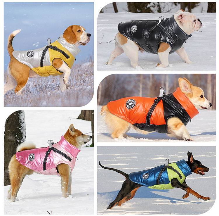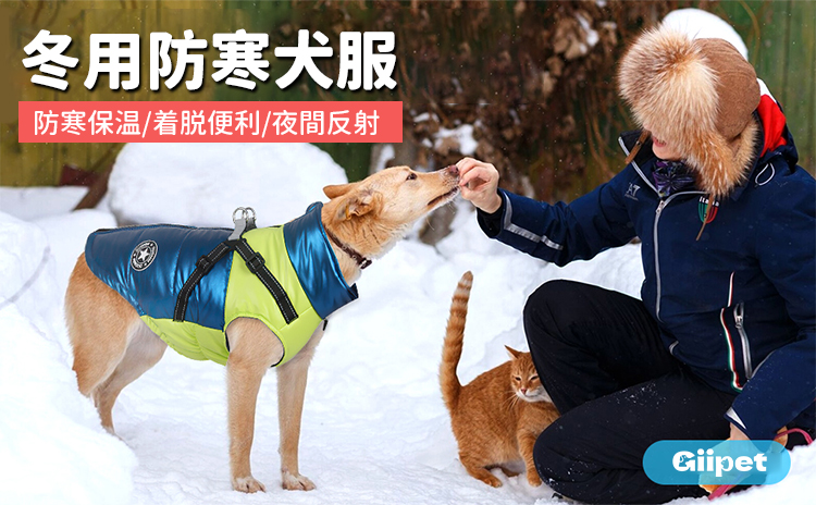 Giipet-秋冬新作ペット用保温ダウンジャケット 犬服 冬用 犬用コート 綿服 ドッグウェア 防水 防寒 防風 防雪 保温綿入れ 着脱簡単 小型犬 中型犬 大型犬 ジャケット式 反射材 寒さ対策 可