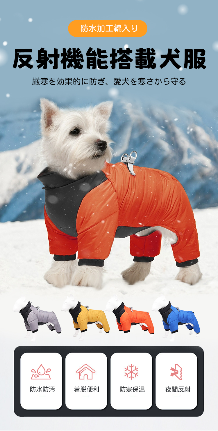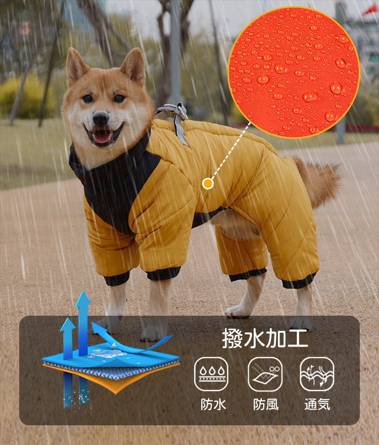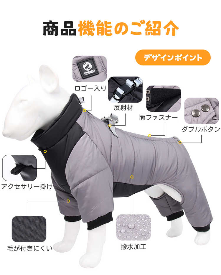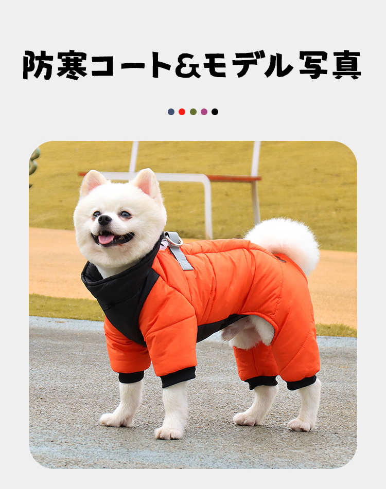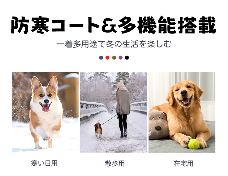 Giipet-リード付き中綿防寒防風コート 犬用 冬用 暖かい 防水ジャケット 夜間反射付き 軽量着脱簡単 小型犬中型犬対応 ペット用犬服 ダブルボタン 面ファスナー調節可能 防汚加工 多色展開