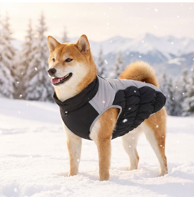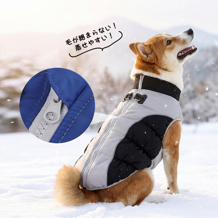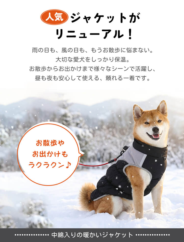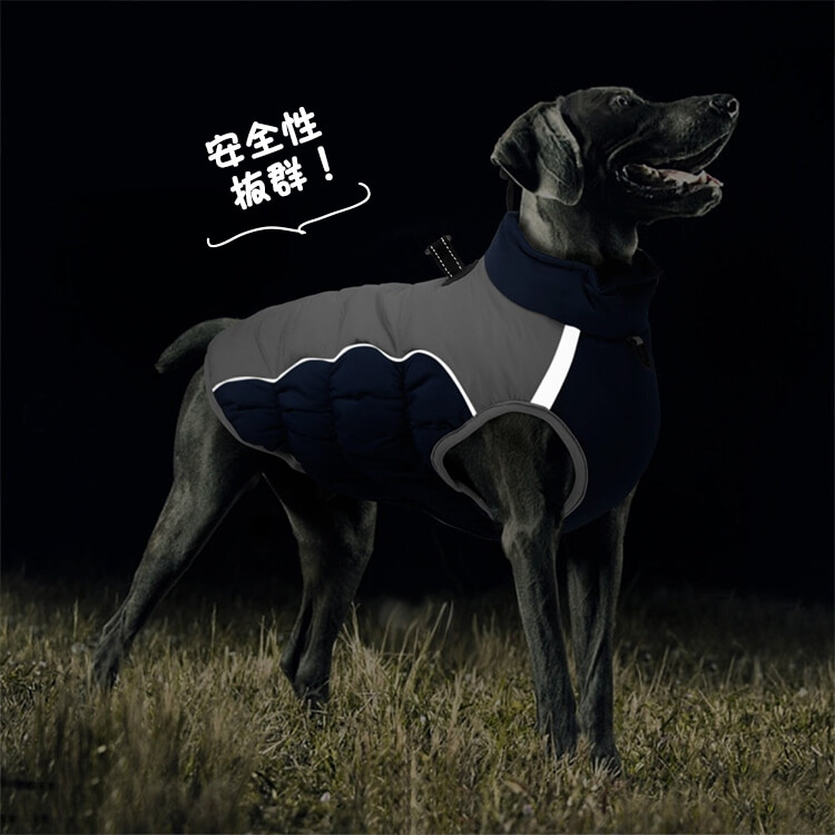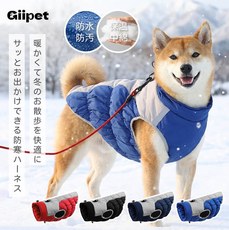 Giipet-撥水防風防寒ドッグウェア 犬用ジャケット 反射デザイン 三層キルティング 中綿入り 防風 防水 防汚 XL〜6XL 冬用犬服 着脱簡単 夜間反射ストラップ ハーネス付き 体温保持 風防止 耐寒加工 ジャケット式