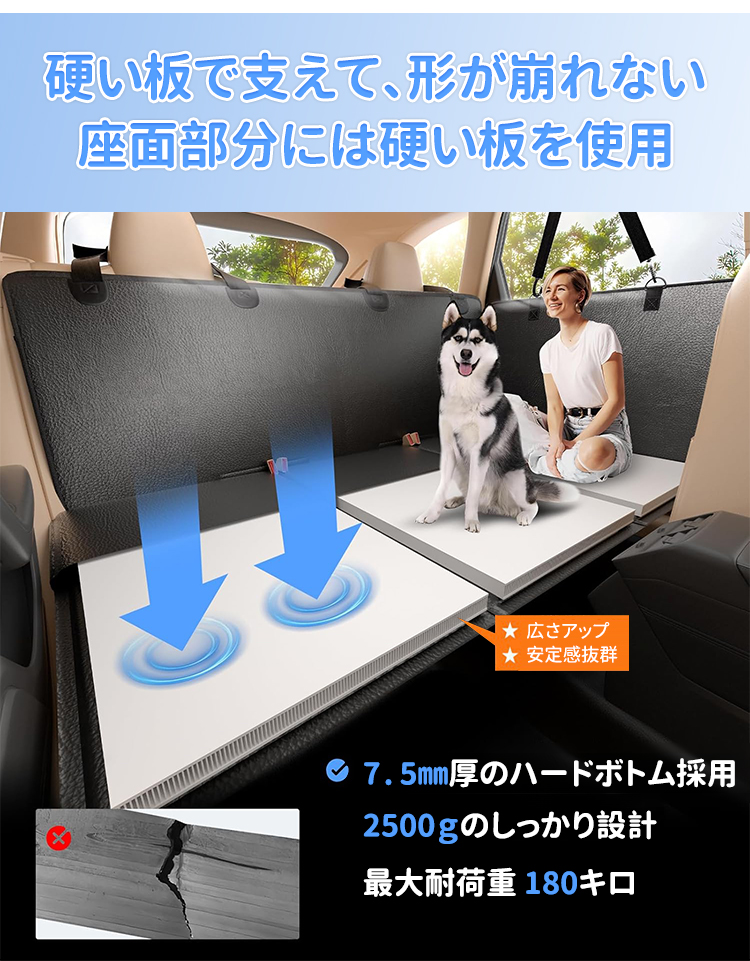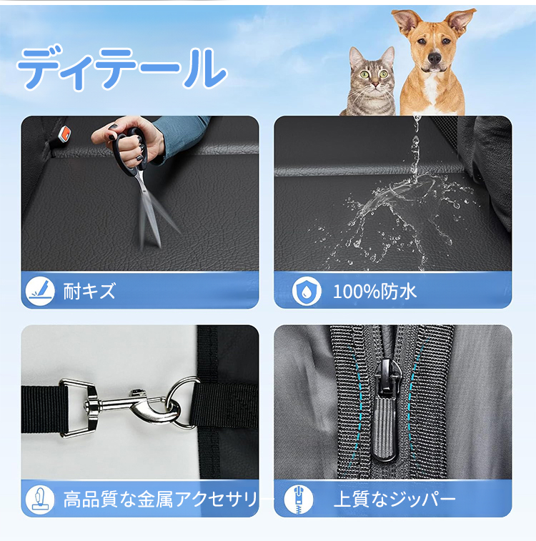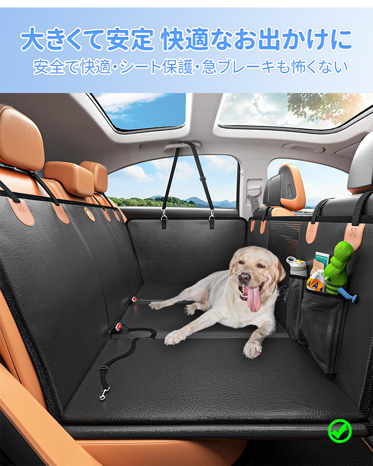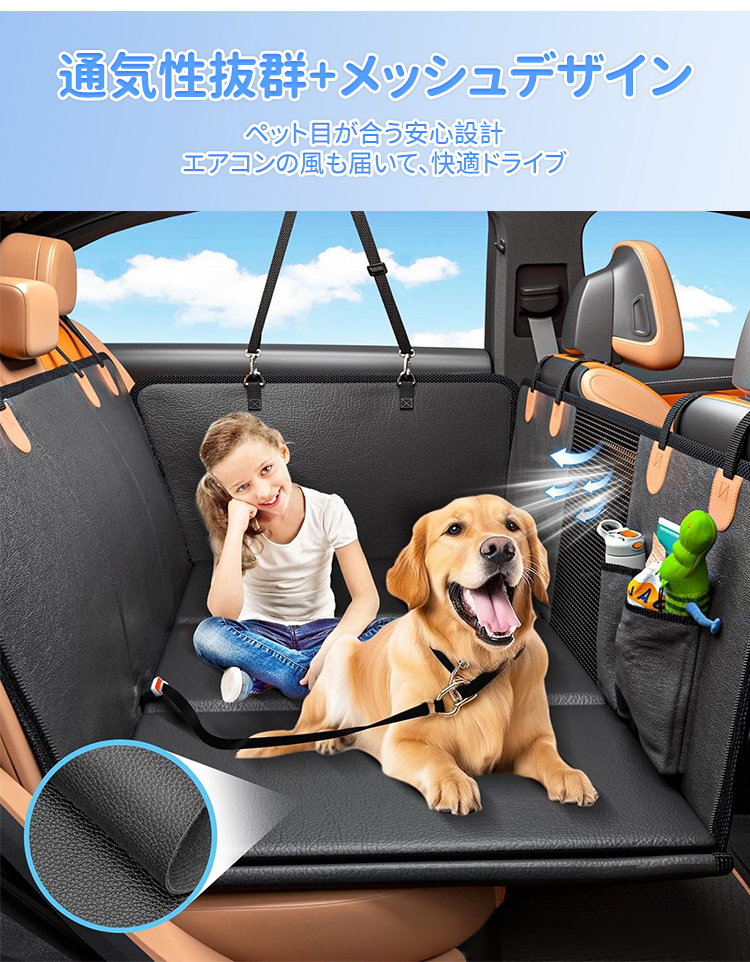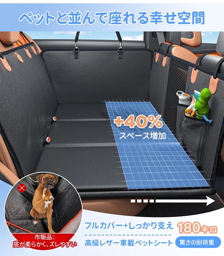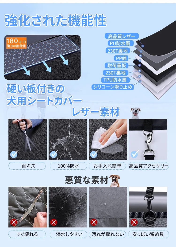 高級レザー車載ペットシートカバー 防水防キズ 耐荷重180kg 硬質ボード採用 滑り止め 通気性メッシュデザイン SUV・トラック対応 広々スペース40%増 簡単取付お手入れ 愛車保護 ペット快適ドライブ
