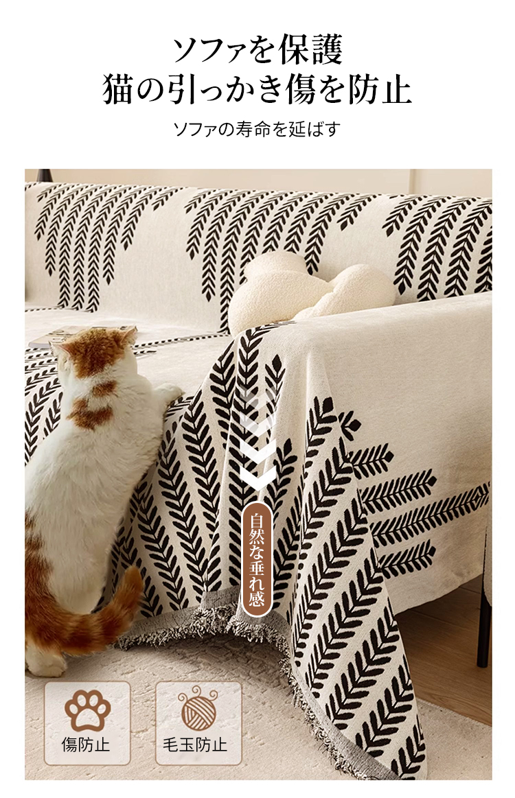 オールシーズン猫引っかき防止ソファカバー 両面リバーシブル 傷防止 毛玉防止 滑り止め ジャカード工芸 通気性抜群 耐久性 肌触り良い 汚れ防止 おしゃれ 北欧風 6色・6サイズ展開