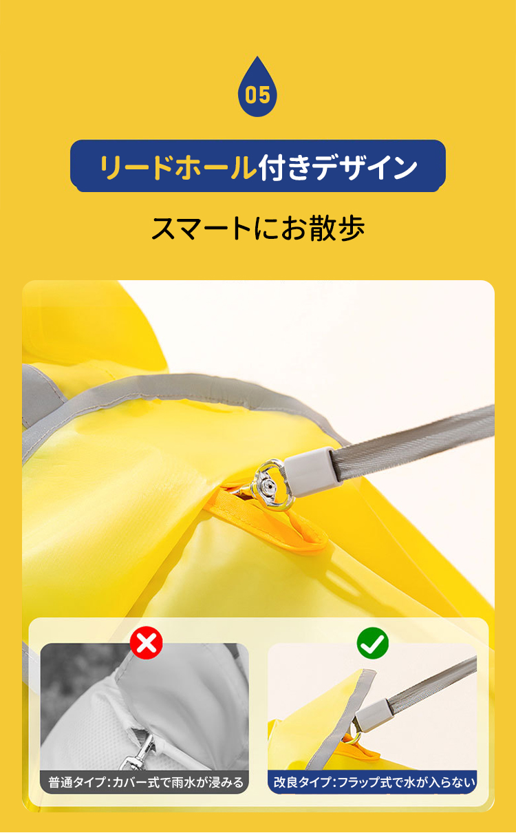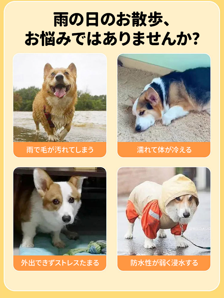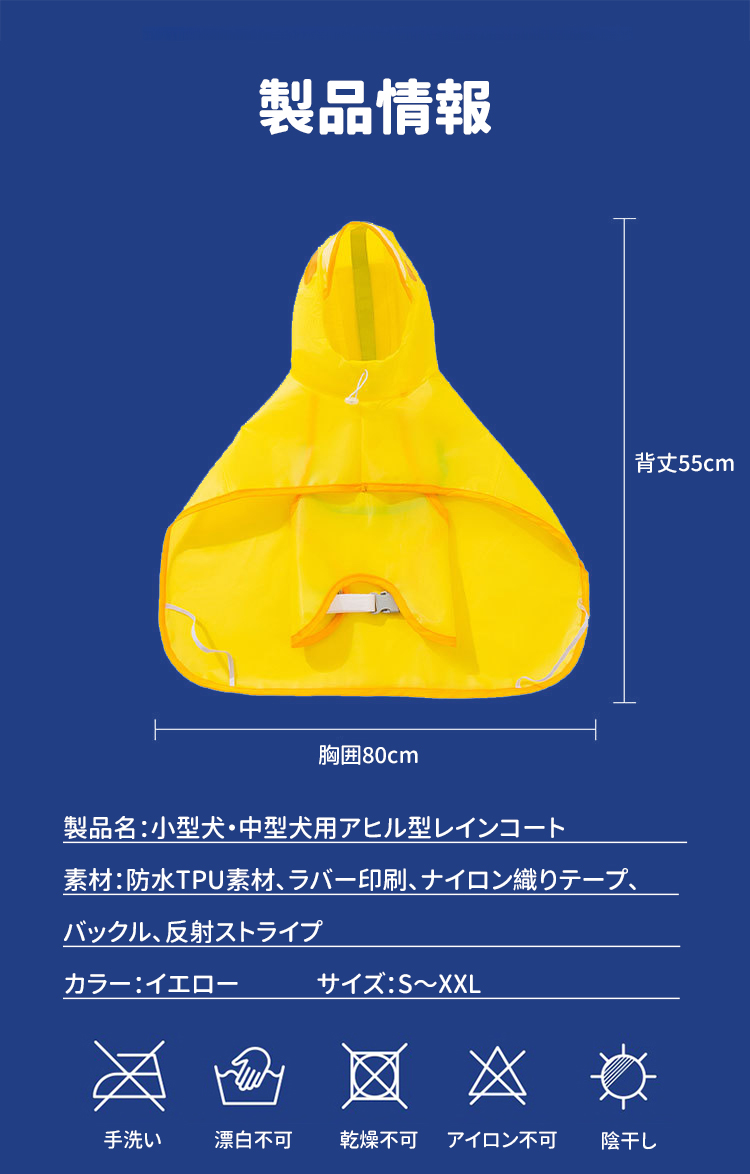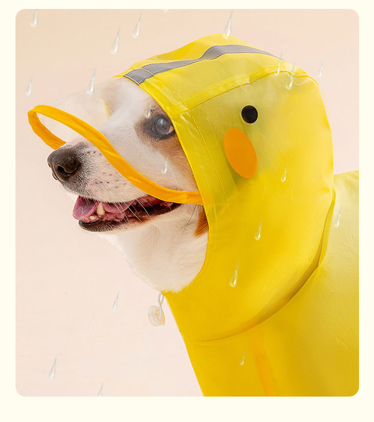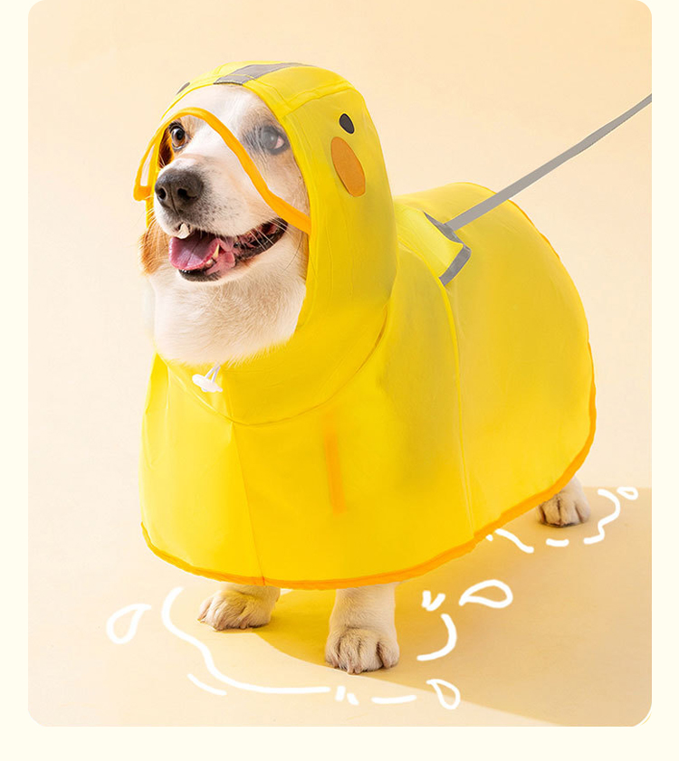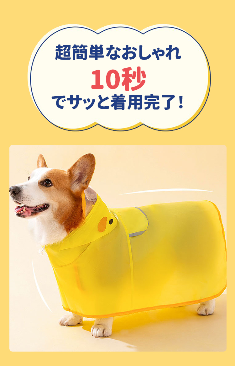 小型犬・中型犬用アヒル型レインコート ペット用防水雨具 完全防水TPU素材 反射ストライプ付き 雨の日お散歩快適 短足対応設計 引きずらない全体カバー 10秒簡単着脱 イエロー S〜XXL