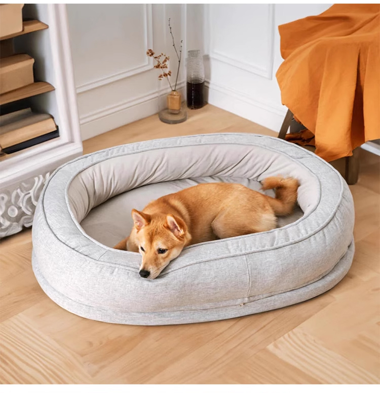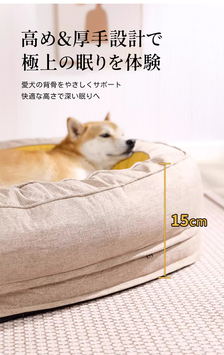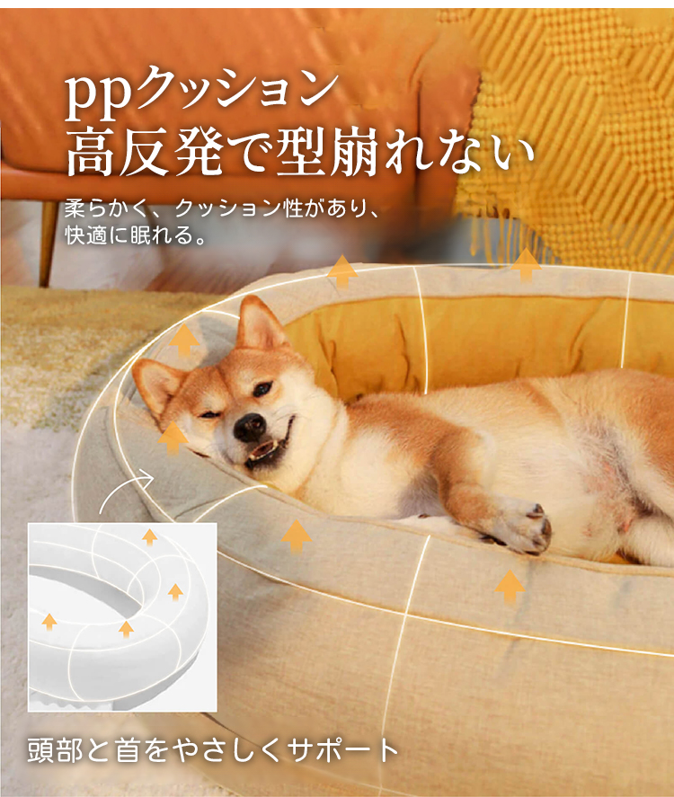 ドーナツ型ペットベッド 厚手クッション 3D低反発ウレタン 背骨サポート 関節保護 波型マッサージデザイン 通気性抜群 ムレにくい 頭部&首サポート 洗濯機対応 撥水素材 お手入れ簡単 犬猫兼用 年中使える 小型犬 中型犬 大型犬対応