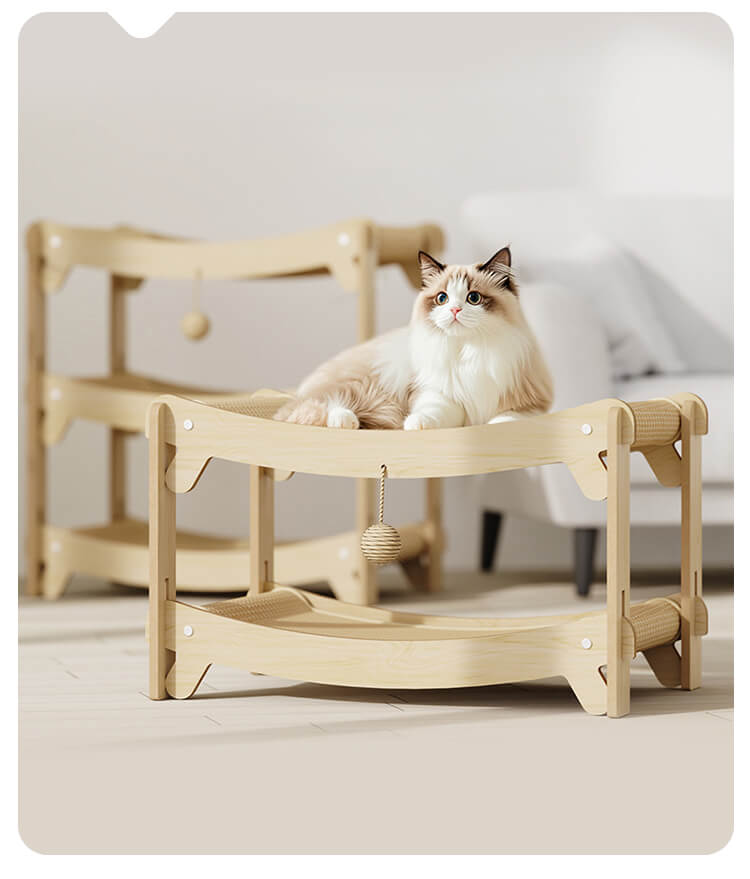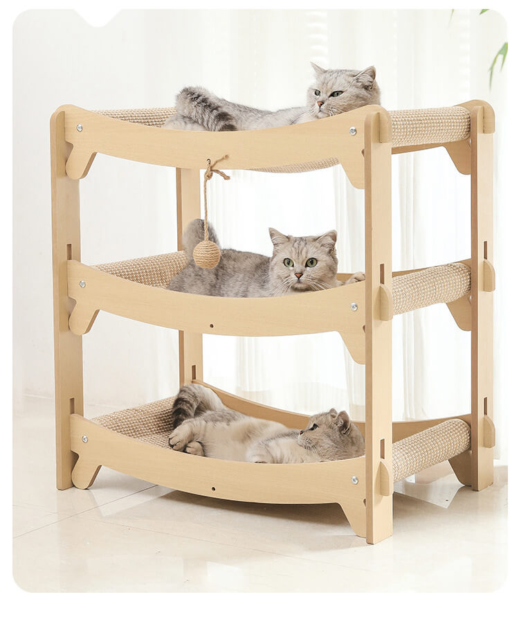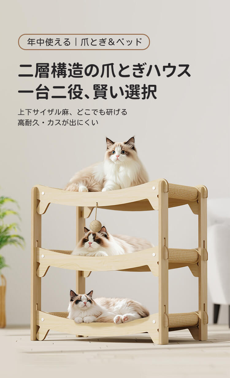 多層爪とぎハウス 多機能猫用爪とぎベッド キャットタワー 立体構造 頑丈な木製フレーム サイザル麻 大型猫対応 複数匹飼い 省スペース 組み立て簡単 年中使える つめとぎ 寝床 遊び場 運動不足解消 ストレス解消
