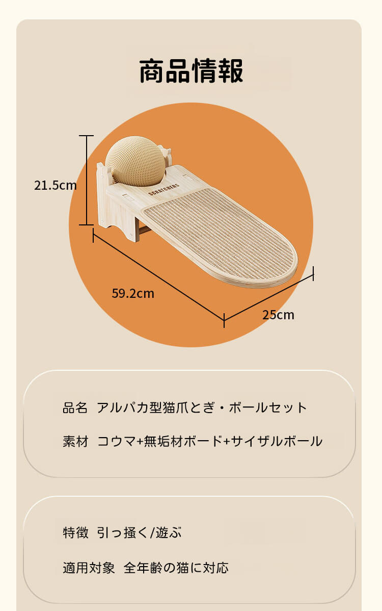 猫爪とぎ板&ボールセット アルパカ型 ボール付 多機能 一台3役 爪研ぎ 遊び お昼寝 耐久性抜群 クズが出ない 天然サイザル麻製 全年齢対応 湿気対策 家具保護 ストレス解消 新感覚爪とぎ