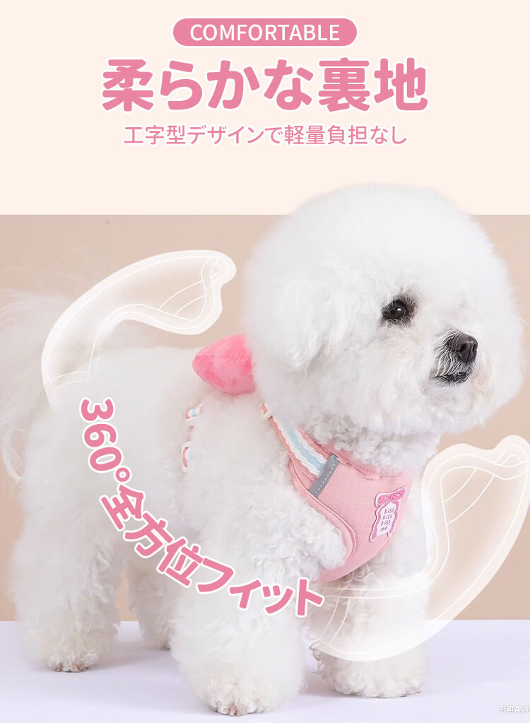 可愛いリボン付き犬用ハーネス おしゃれで安定感抜群!軽量&通気性メッシュで快適フィット ズレにくい簡単装着 負担なしの工字型デザイン 豊富なドーパミンカラー 小型犬 中型犬 子犬 お散歩 お出かけ用 散歩グッズ 犬用品
