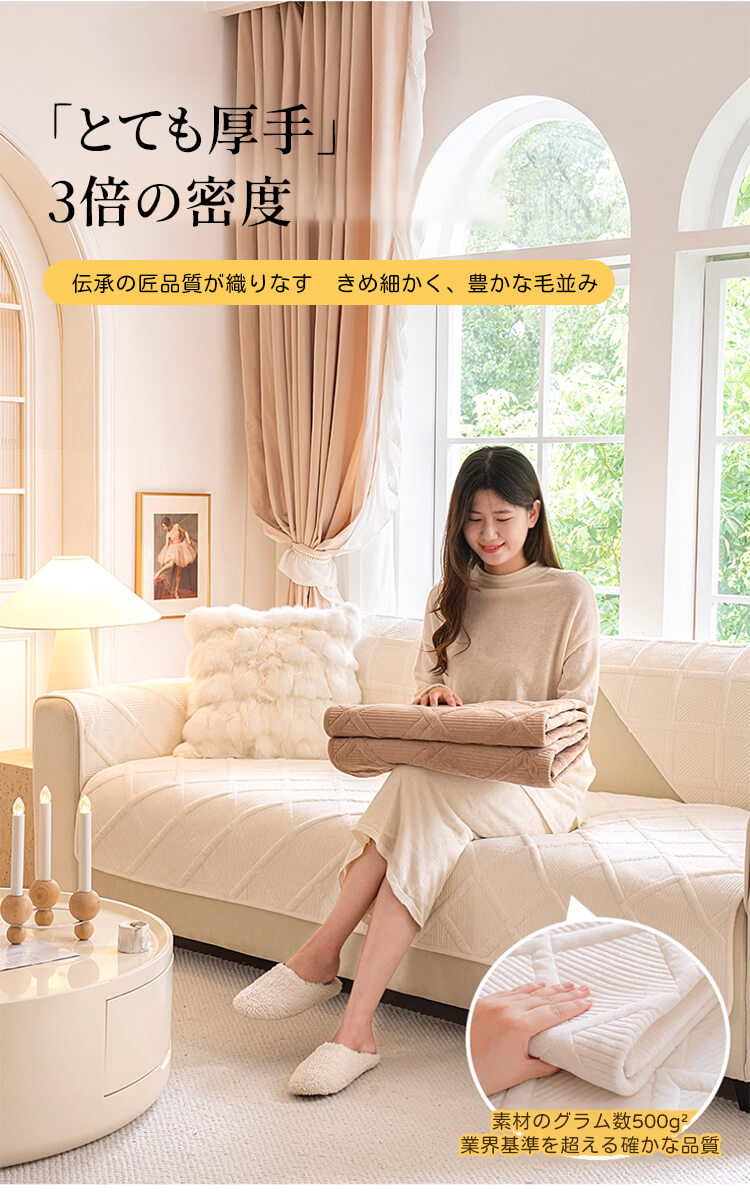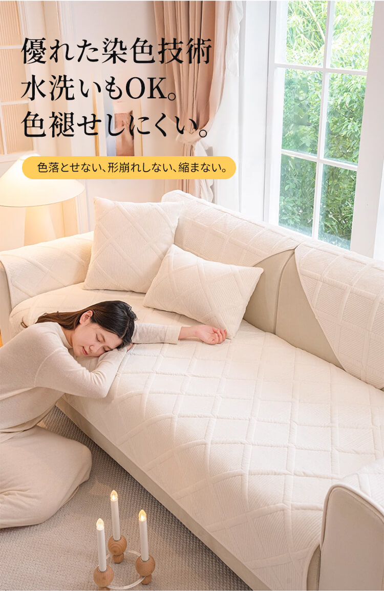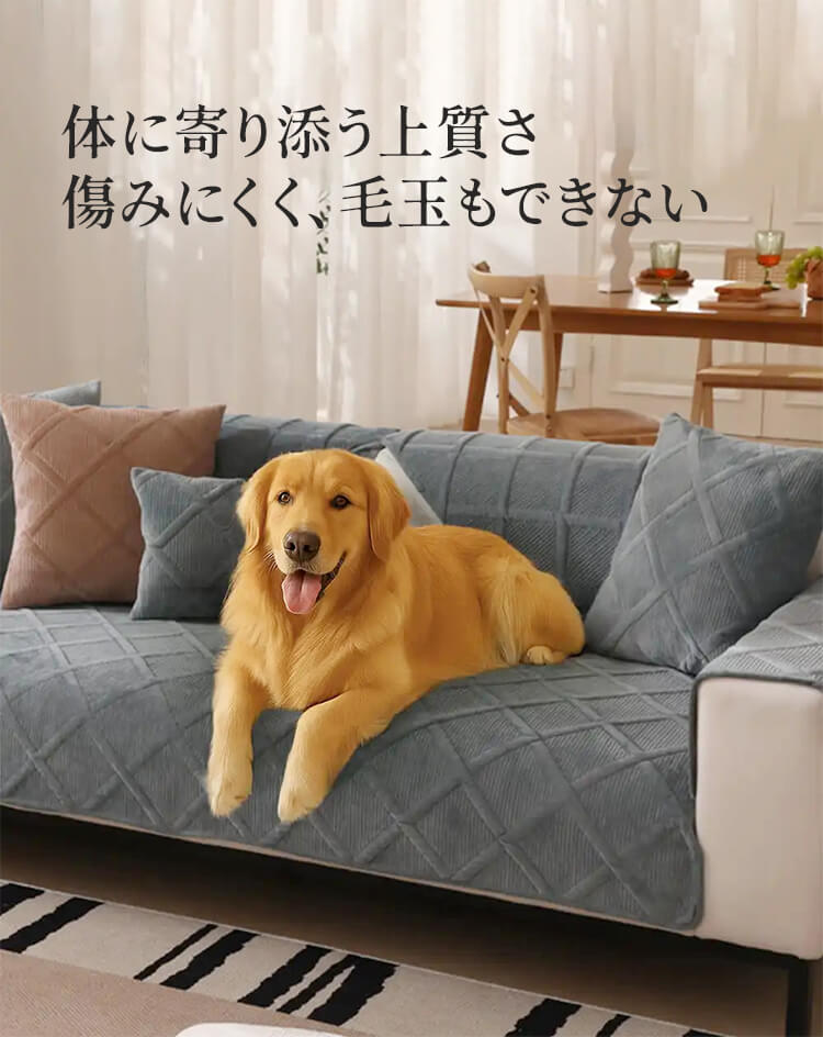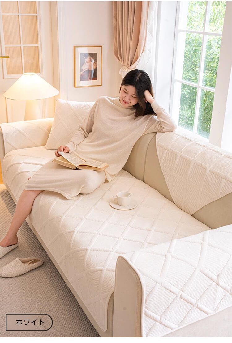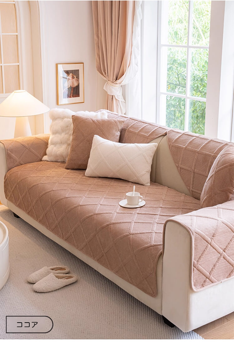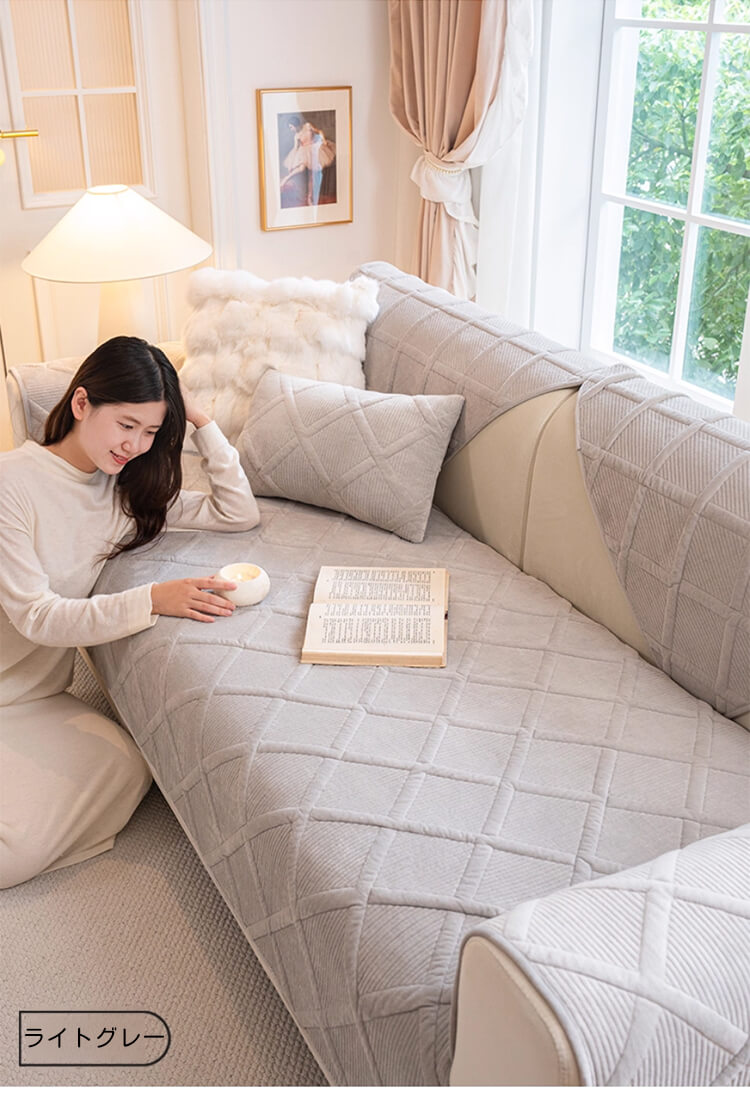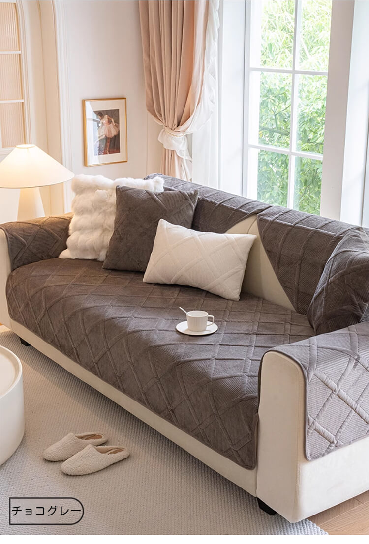 立体チェック柄ふんわり厚手ソファカバー 暖かい 高品質シェニール織り 防塵防ダニ 滑り止め 洗える キルティング加工 犬猫対策 ペット用 ソファー保護カバー 北欧 おしゃれ 無地 多色展開
