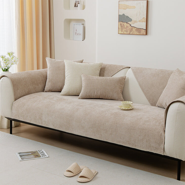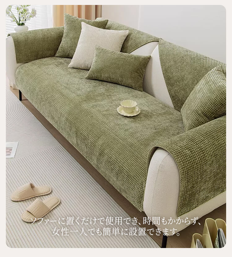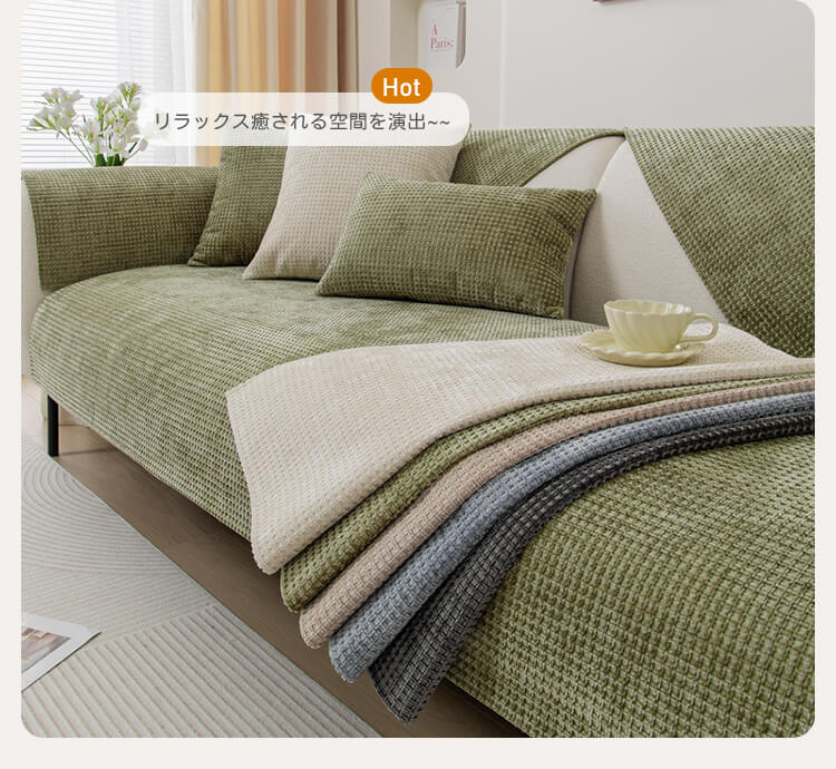 ワッフル柄ソファカバー シェニール生地 マルチカバー 全てのソファ対応 滑り止め 傷防止 ズレない 柔らかな肌触り 犬猫対策 オールシーズン対応 清潔簡単 耐摩耗 毛玉防止 北欧 おしゃれ リビング ソファ保護カバー マルチカバー 6色展開
