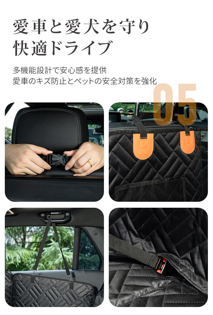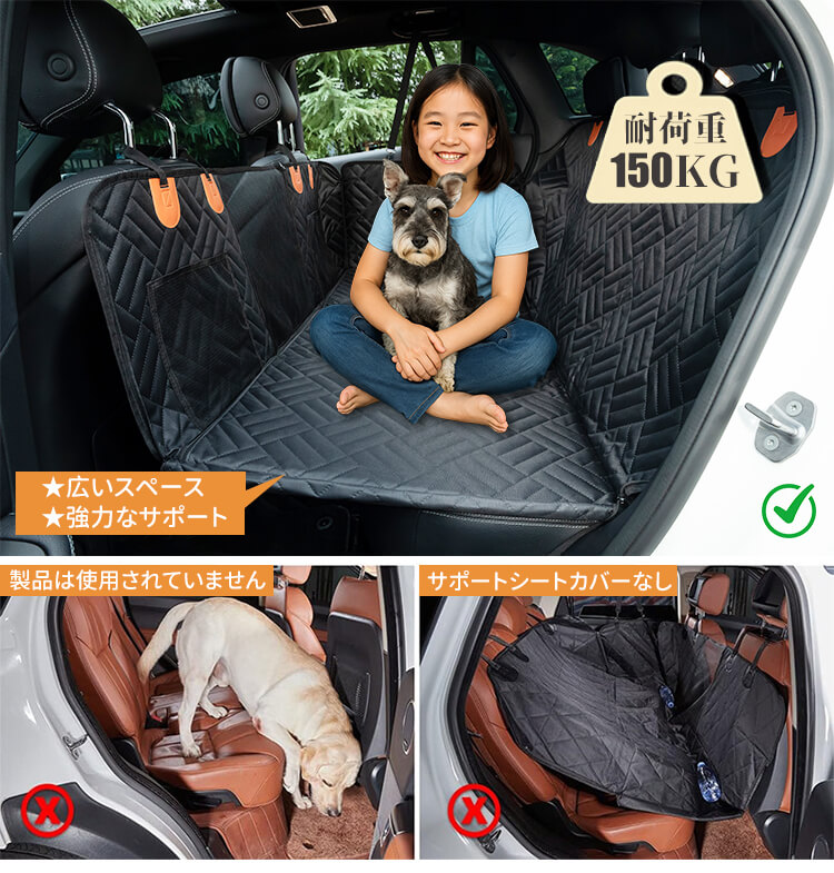 ペット用ドライブシート 360度完全保護 防水防汚 耐久性抜群 進化版7層構造 全車種対応 後部座席 トランク兼用 飛び出し防止 収納ポケット付 愛車と愛犬を守る 150kg耐荷重