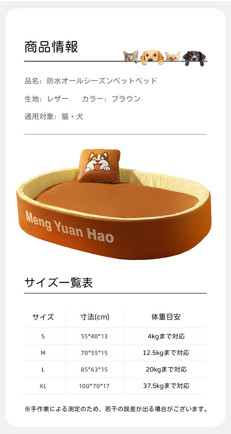 防水オールシーズンペットベッド 犬猫用 楕円形 続く暖かさ へたらない高耐久設計 瞬時ぬくぬく お手入れ簡単 ふわふわ柔らかな肌触り 首を守るサポート枕 大型犬 小型犬 中型犬 子猫 4サイズ 37.5kgまで対応