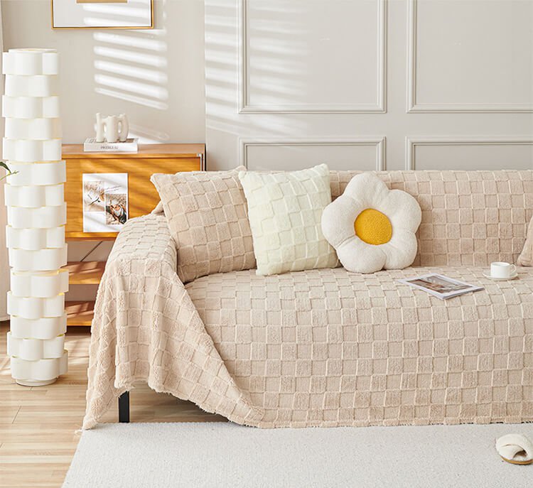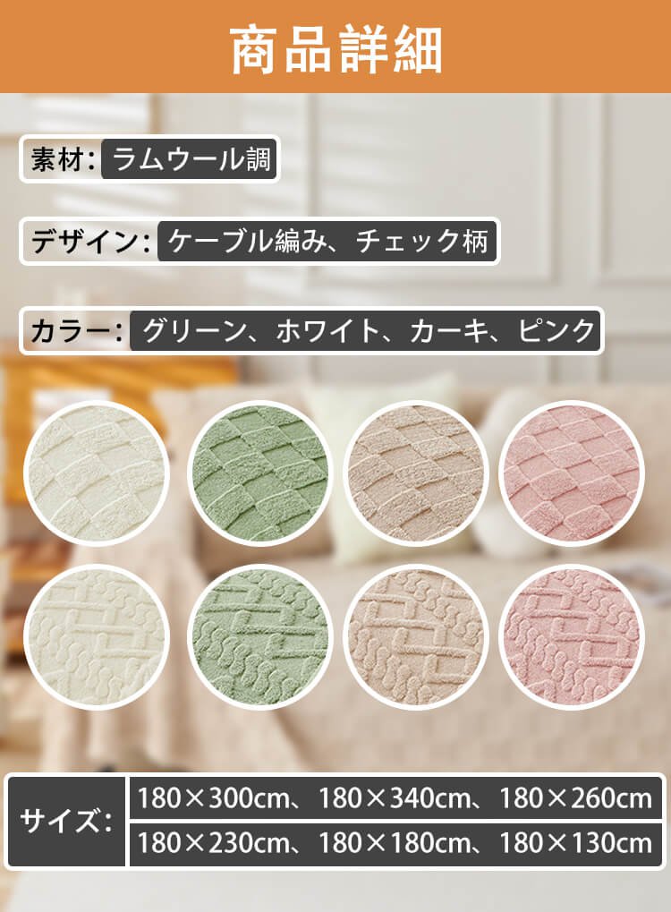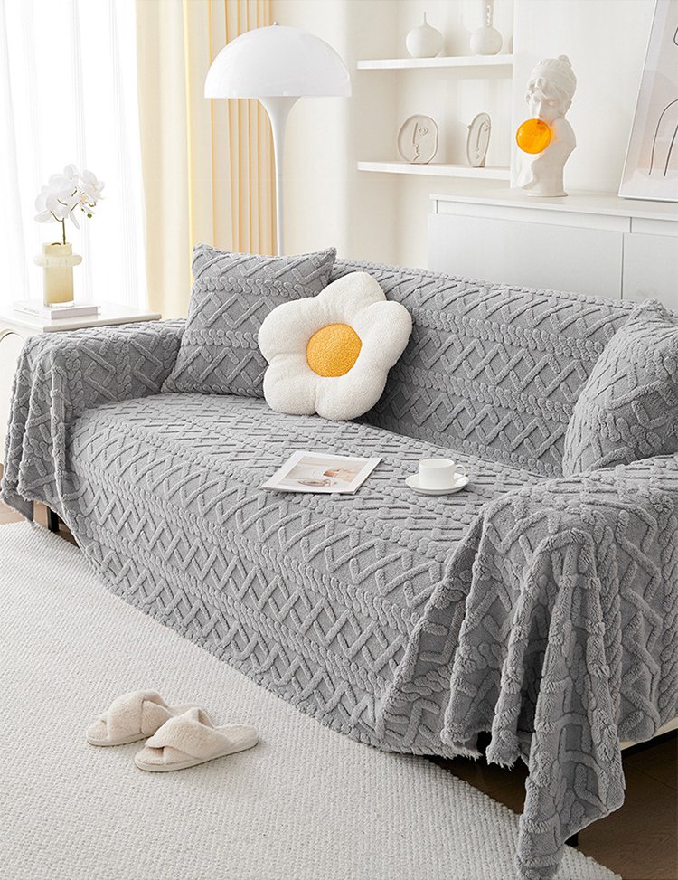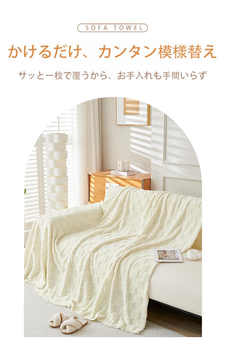 無地厚手ラムウール調ソファカバー マルチカバー ひっかき傷に強い ペットと安心 ケーブル編み/チェック柄 洗える ズレにくい とろける肌触り エコ素材 異臭・毛玉なし 長持ち 1人〜5人掛け ブランケット ベッドスロー 模様替え オールシーズン