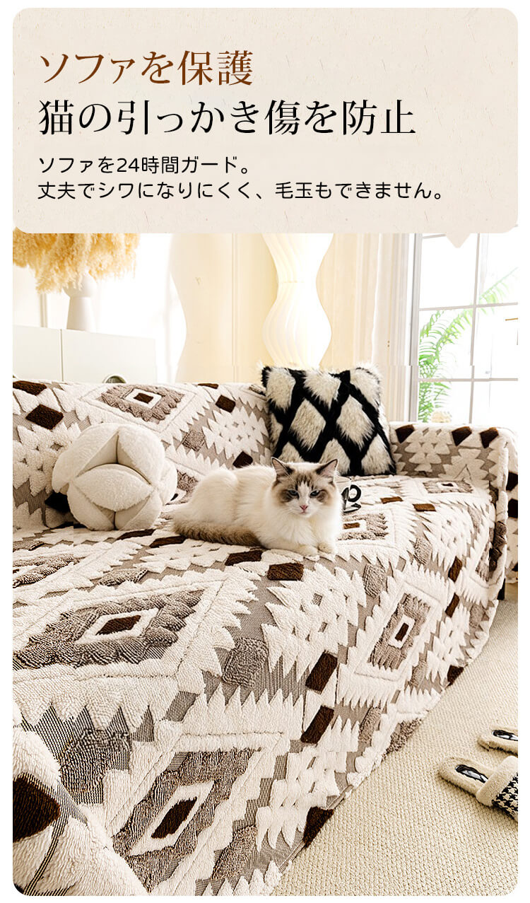 秋冬用猫ひっかき防止ソファカバー 極厚フランネル 高密度 マルチカバー ズレない 滑り止め 洗濯機OK 色落ちなし 毛玉防止 傷に強い 耐久性 肌に優しい ふわふわ とろける肌触り 暖か 保温防寒 汚れ防止
