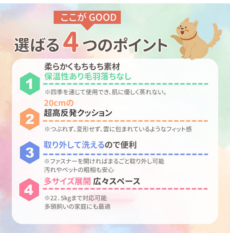ドーパミン風ペットベッド 四角型 多頭飼い対応 ふわふわもちもち超高反発クッション 洗える オールシーズン 猫犬兼用 大型犬対応 持ち運び簡単 大空間 広々スペース 汚れにくい
