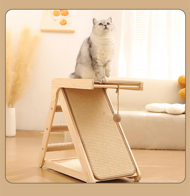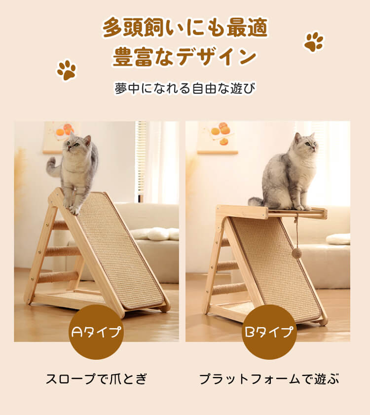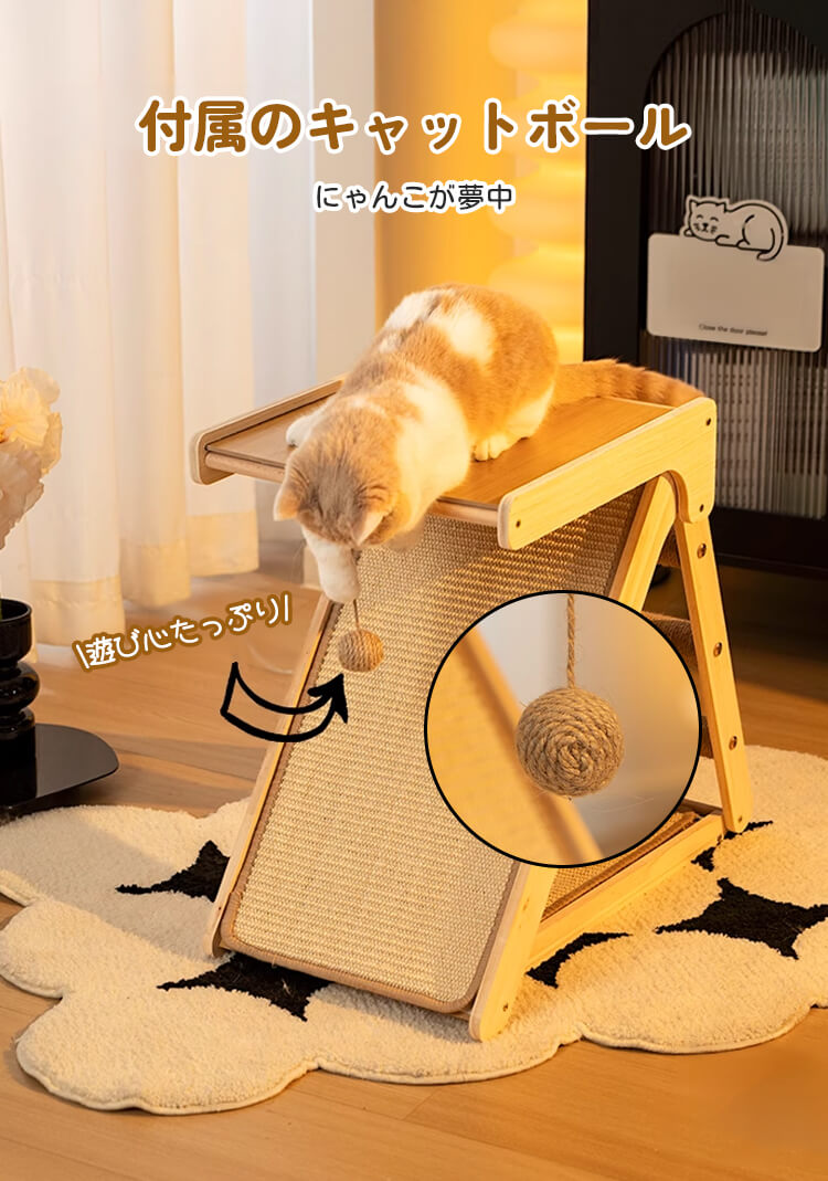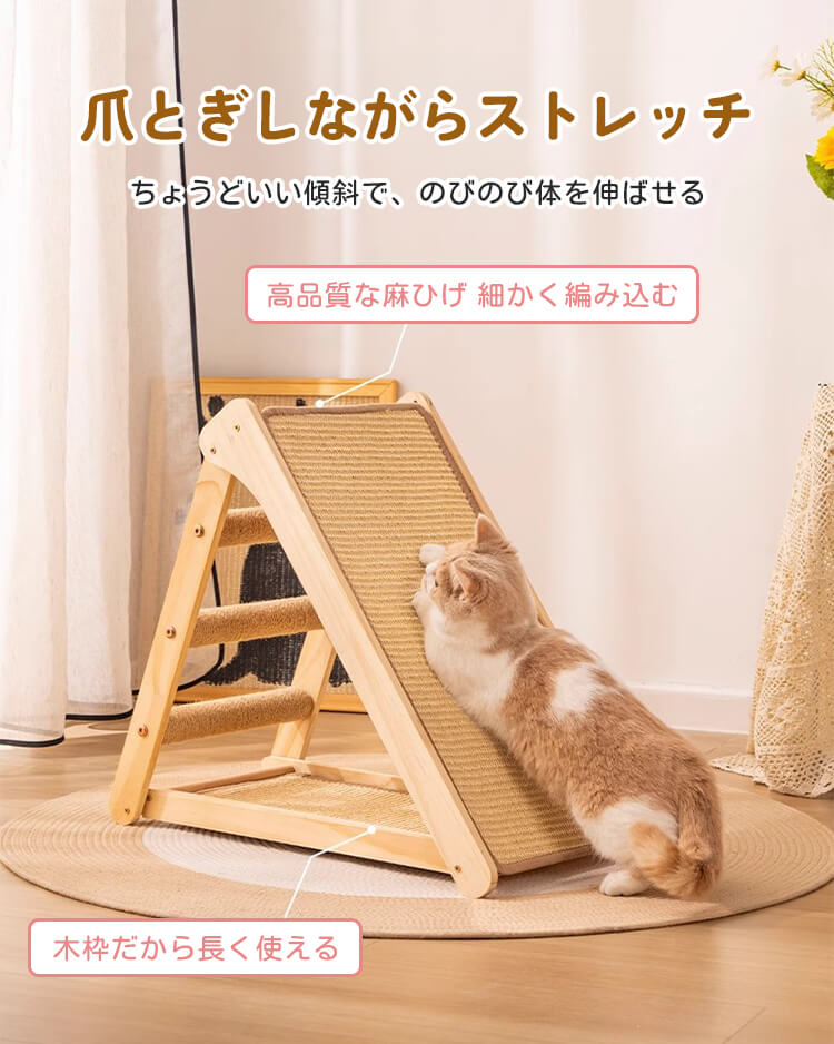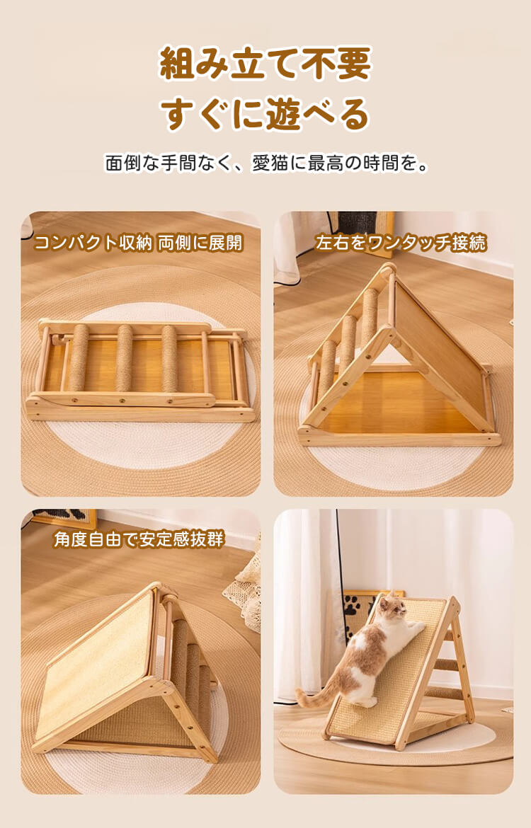 【100件限定】1点ご購入につき1点プレゼント!折りたたみ式猫用爪とぎタワー 天然木製 組み立て不要 多機能 3面使える コンパクト収納 安定感抜群 三角構造 スロープ付き 全年齢・多頭飼い対応 子猫 ぽっちゃり猫も安心 麻縄 サイザル麻 高密度 爪とぎ ストレッチ 遊び場 寝床 一台多役