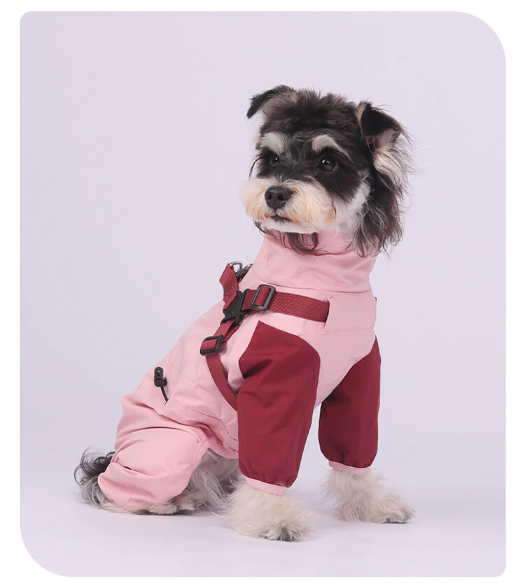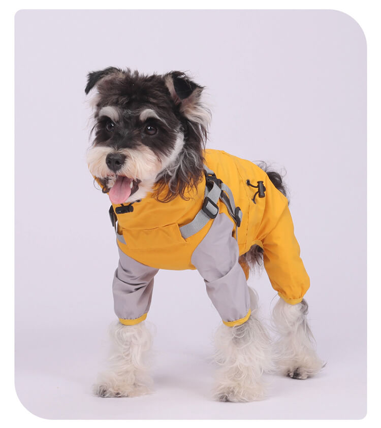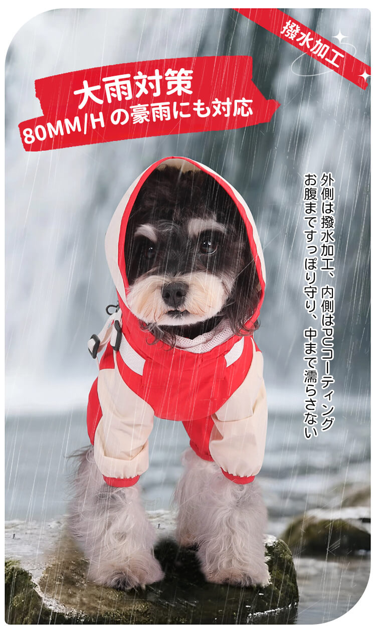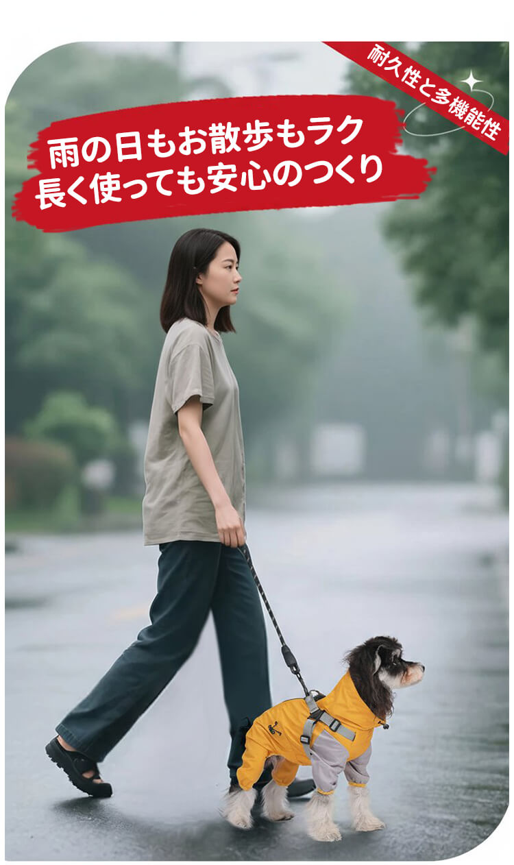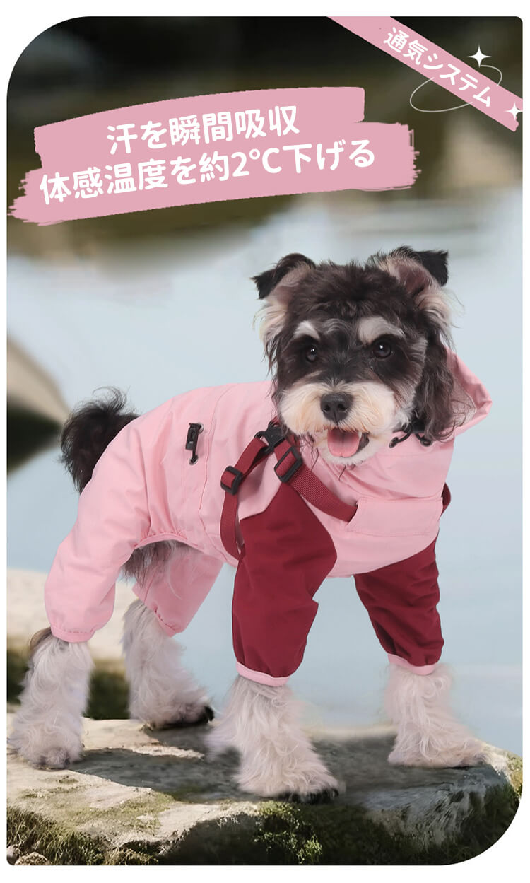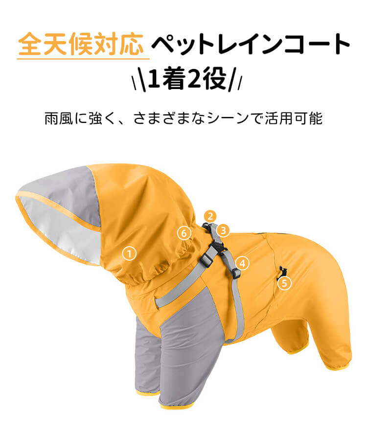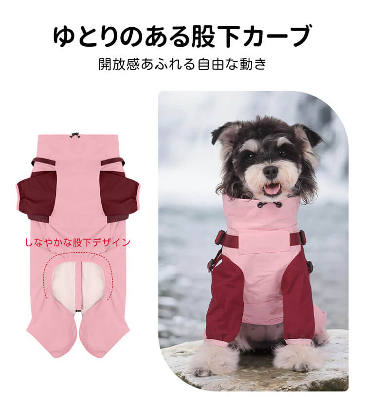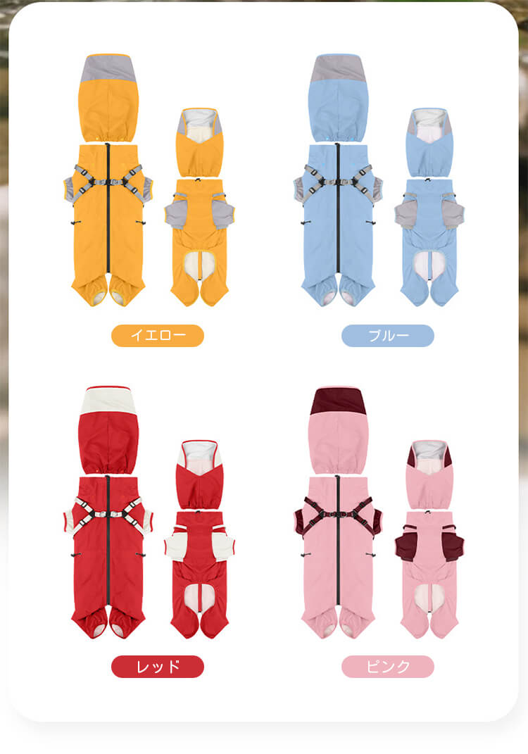 ペットレインコート 一体型ハーネスリード付き 4足タイプ 犬用レインウェア 通気性抜群 防風 防湿 撥水加工 二重防水構造 S-3XL 激しい引っ張りにも強い 蒸れない 快適 長持ち 全天候対応 雨の日散歩も安心