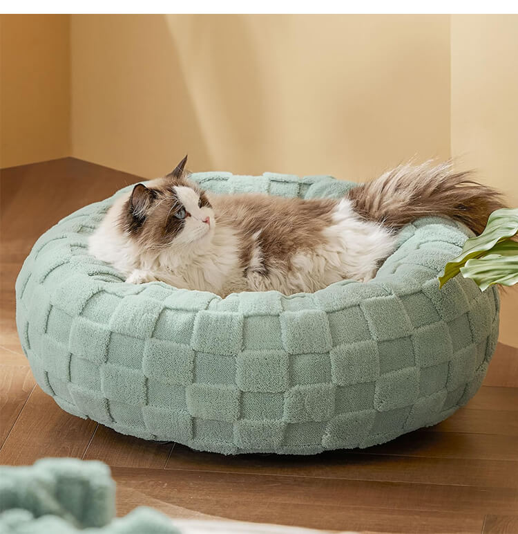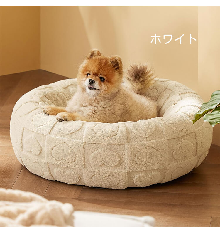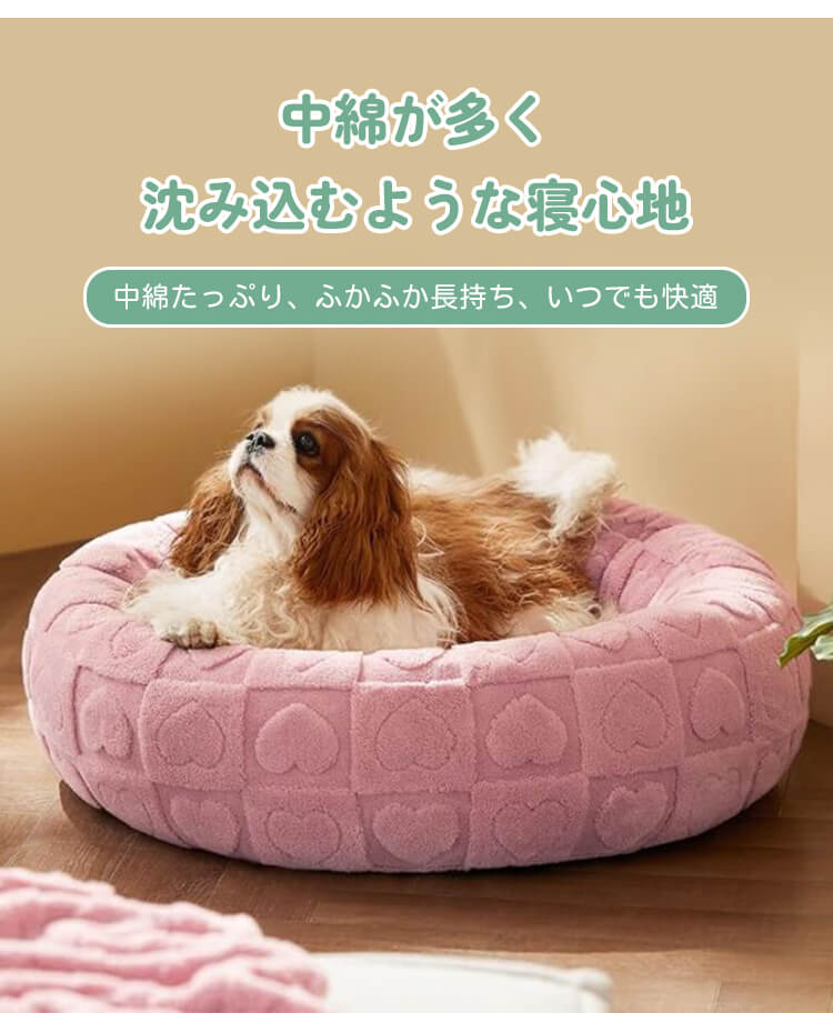 ピーチハート柄ペットベッド ふわふわ包み込み ジャカード ハート/チェック柄 犬猫兼用 丸型 ふわふわ高密度フリース製 丸洗いOK 滑り止め付 除菌抗菌消臭 睡眠改善 噛みに強い 暖かい通気性抜群 ジャカード 40-120cm選べるサイズ