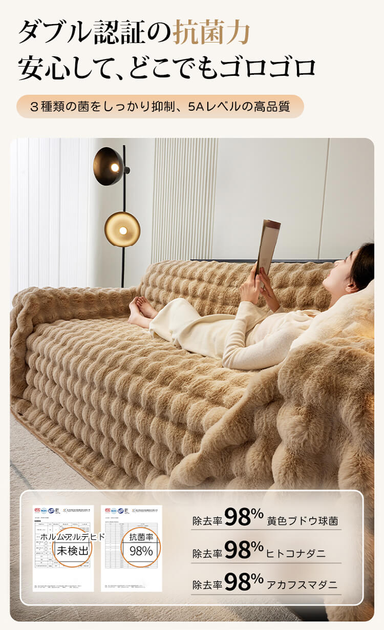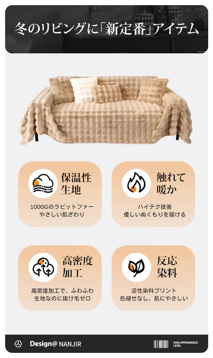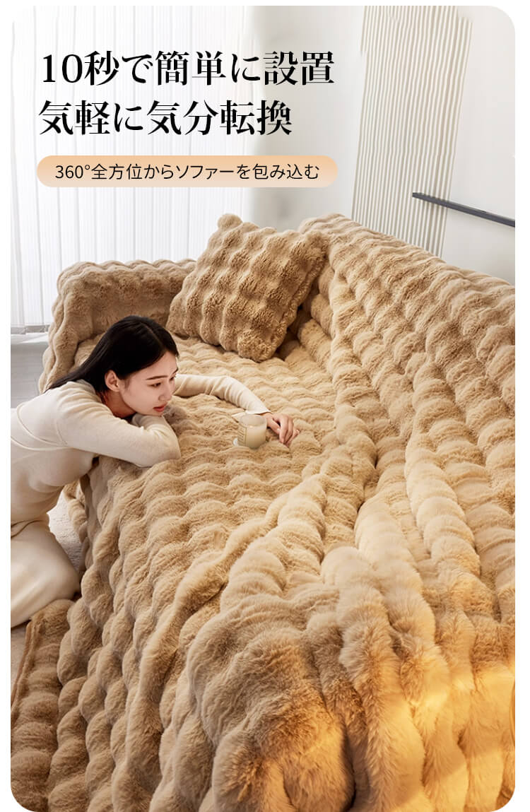 ラビットタッチソファーカバー 極厚1000g/m³ ふわふわ もこもこ とろける肌触り 蓄熱保温 長時間暖か 抗菌 ダニ対策 ホルムアルデヒド未検出 高密度加工 毛抜けゼロ 滑り止め ズレにくい 多用途ブランケット 秋冬用 インテリア