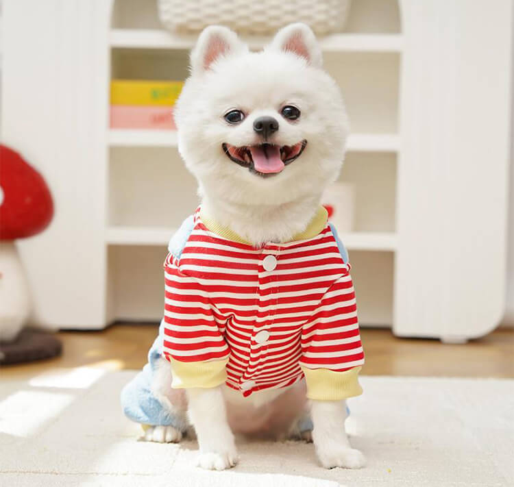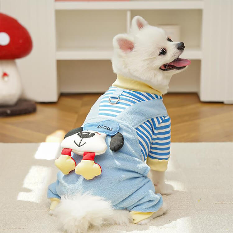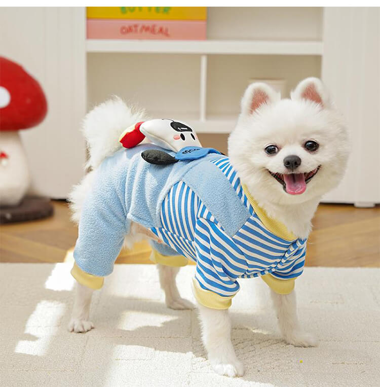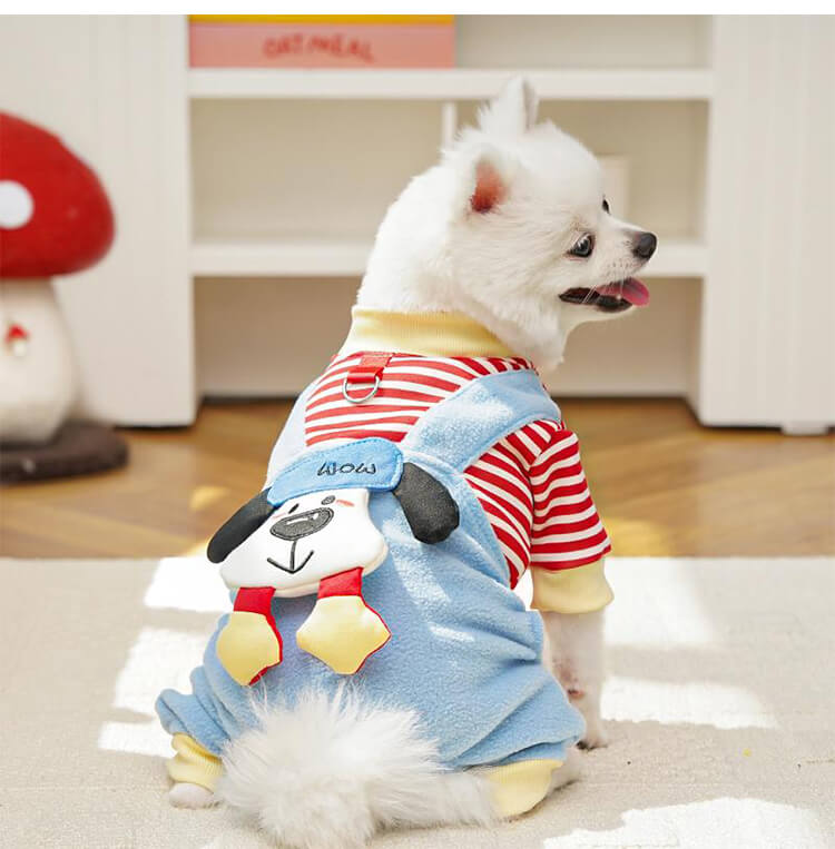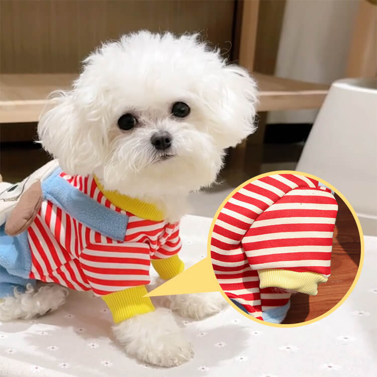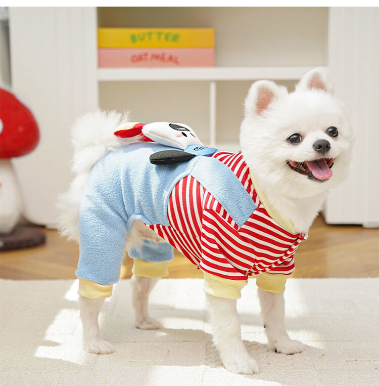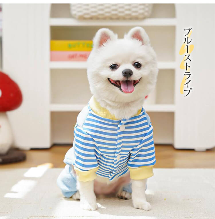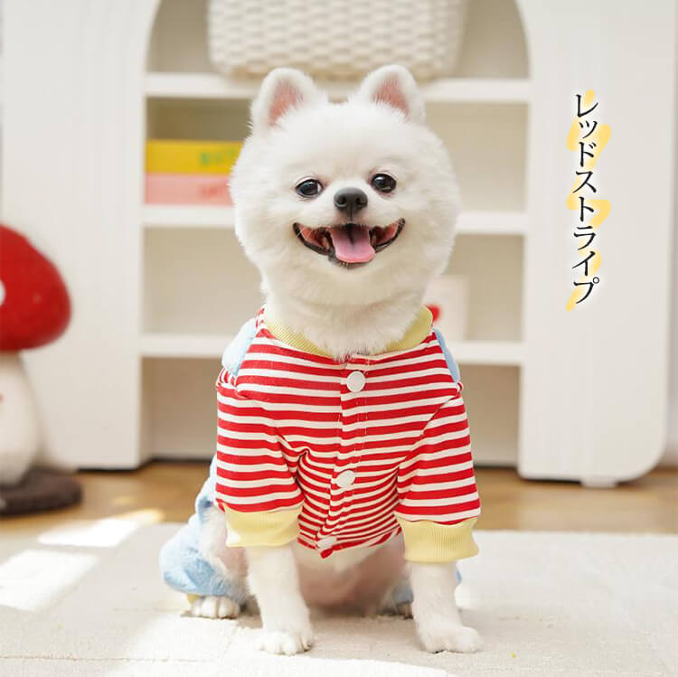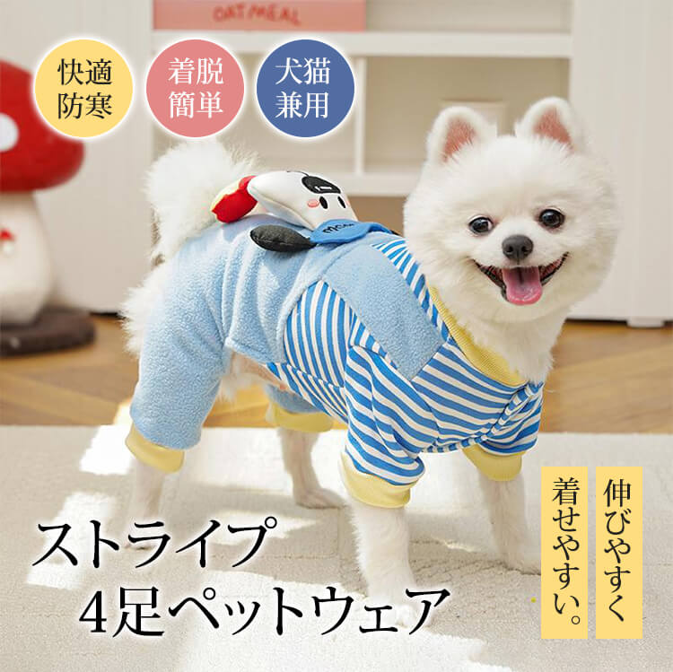 4足ペットウェア 犬服 猫服 ドッグウェア キャットウェア ストライプ柄 立体足型モチーフ 秋冬 防寒 保温 暖かい 発熱フリース 伸縮性抜群 ストレッチ 締め付けゼロ 着脱簡単 スナップボタン お散歩安心 毛玉防止 汚れにくい 小型犬 中型犬用