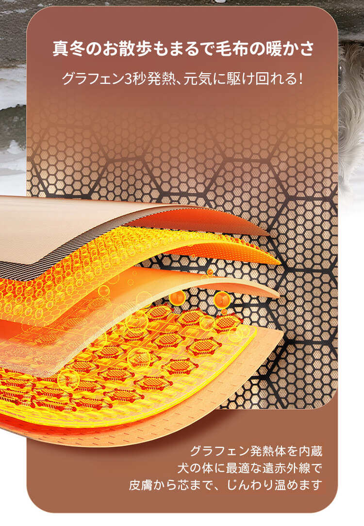 犬用裏起毛防寒ジャケット グラフェン発熱体内蔵 秋冬新作 フード付き 反射材付き ドッグウェア 暖かい 防風 保温 防水 軽量 寒さ対策 夜間散歩安心 おしゃれ 小型犬 中型犬 大型犬 ベストタイプ 綿入れ 着脱簡単 ストレスゼロ