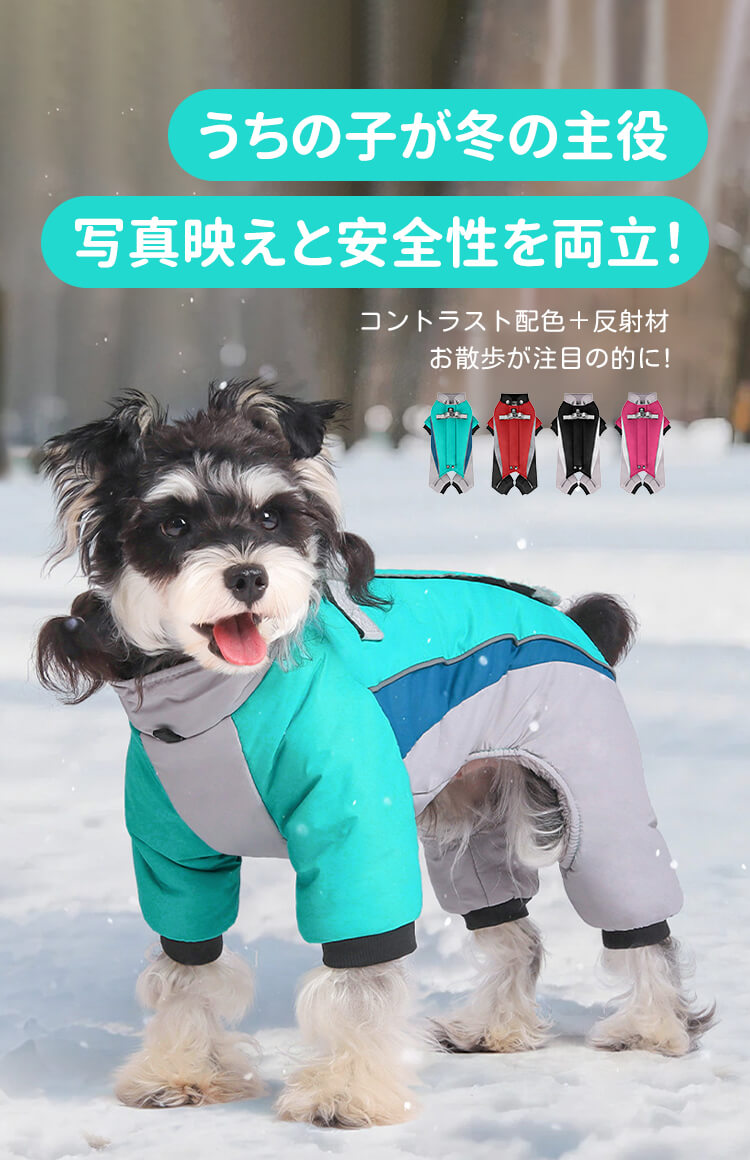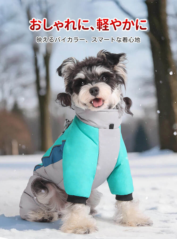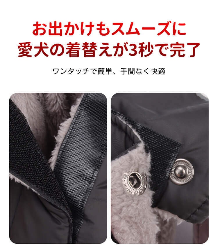 ペット用保温ジャケット 犬服 ドッグウェア 北極ファー ふわふわ裏地 秋冬 防寒 防水 防風 防雪 -30℃対応 保温 軽量 3秒着脱 ストレスフリー 反射材付き 写真映え バイカラー 股下ゆったり 小型犬 中型犬 寒さ対策