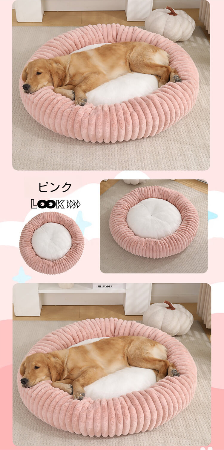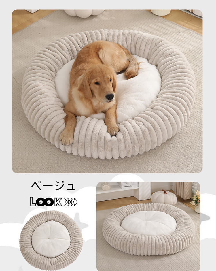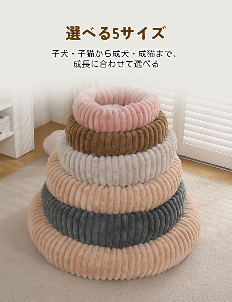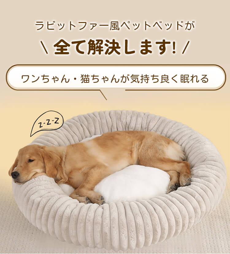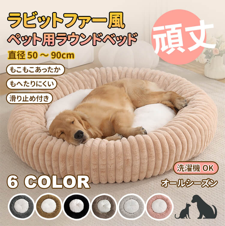 ラビットファー風 ペット用ラウンドベッド もこもこ ふわふわ もっちり肉厚 高密度PP綿ウレタン二重構造 あったか保温 滑り止め付き 洗える へたりにくい 型崩れしない オールシーズン 犬猫兼用 子犬子猫~成犬成猫 ぐっすり快眠