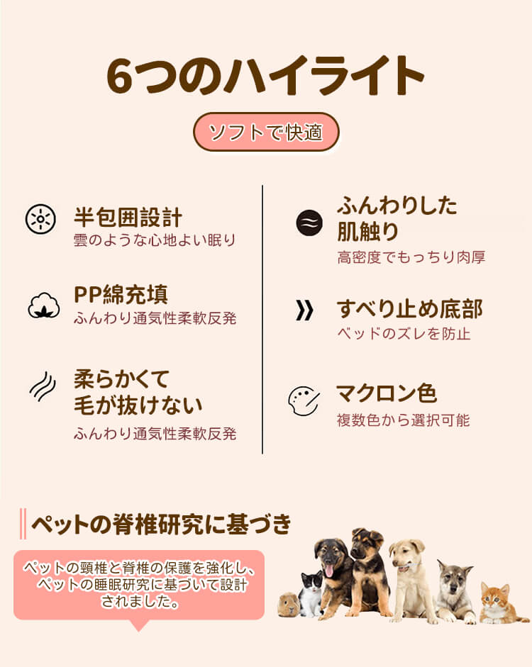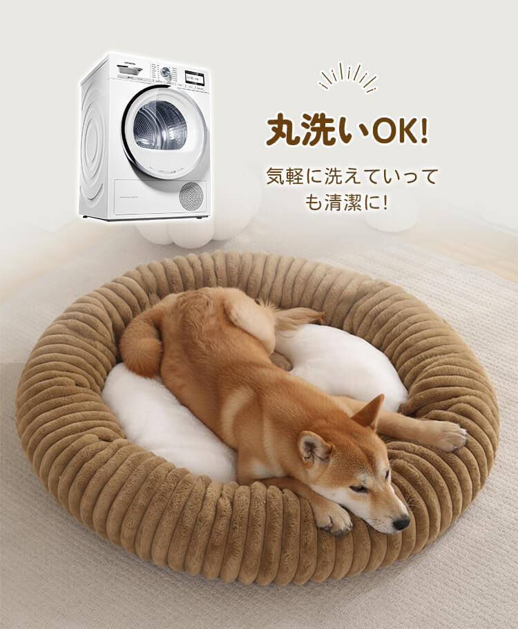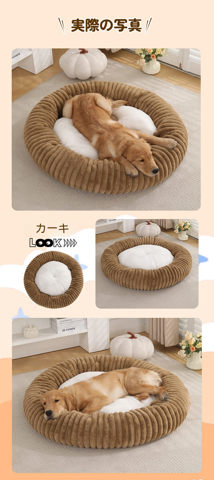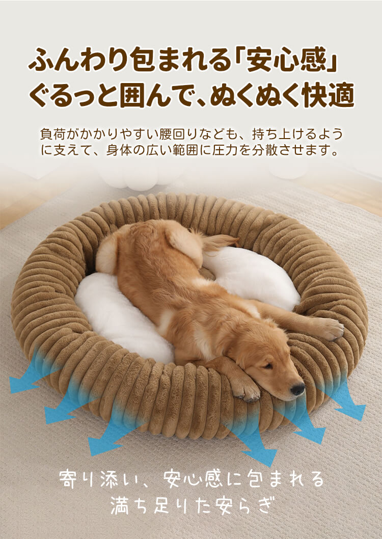 ラビットファー風 ペット用ラウンドベッド もこもこ ふわふわ もっちり肉厚 高密度PP綿ウレタン二重構造 あったか保温 滑り止め付き 洗える へたりにくい 型崩れしない オールシーズン 犬猫兼用 子犬子猫~成犬成猫 ぐっすり快眠