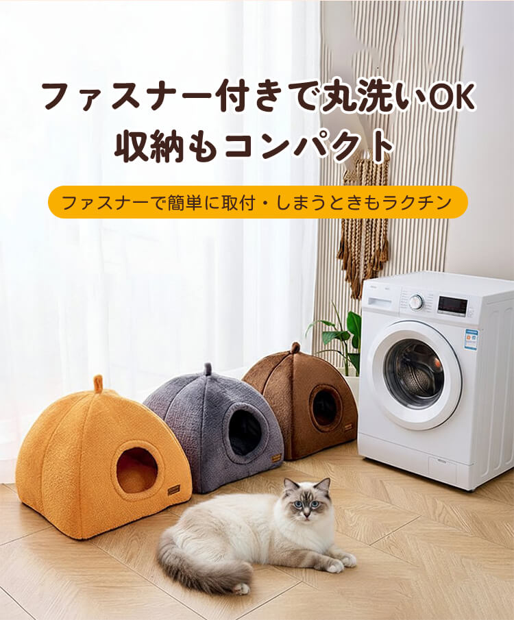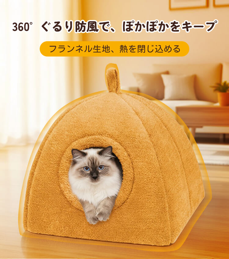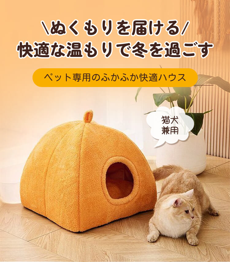 ドーム型ペットハウス ペットベッド ふわもこ 猫犬兼用 ドームハウス 360°防風 高反発クッション 丸洗いOK 滑り止め付 暖かくて心地よい 年中使える頑丈設計 小型犬 中型犬
