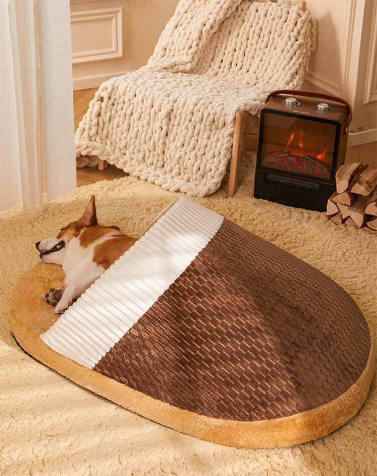 スリッパ型ペットベッド ふわふわ厚手 洗える へたりにくい高反発3Dメモリーフォーム 保温性抜群で快適な眠りを守る 猫犬兼用 広々大空間 オールシーズン対応 小型犬 中型犬 大型犬 多頭飼い 寒さ対策 滑り止め 衛生的 半密閉型