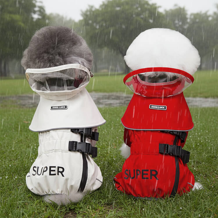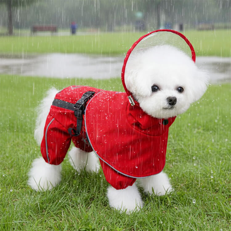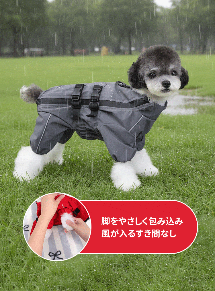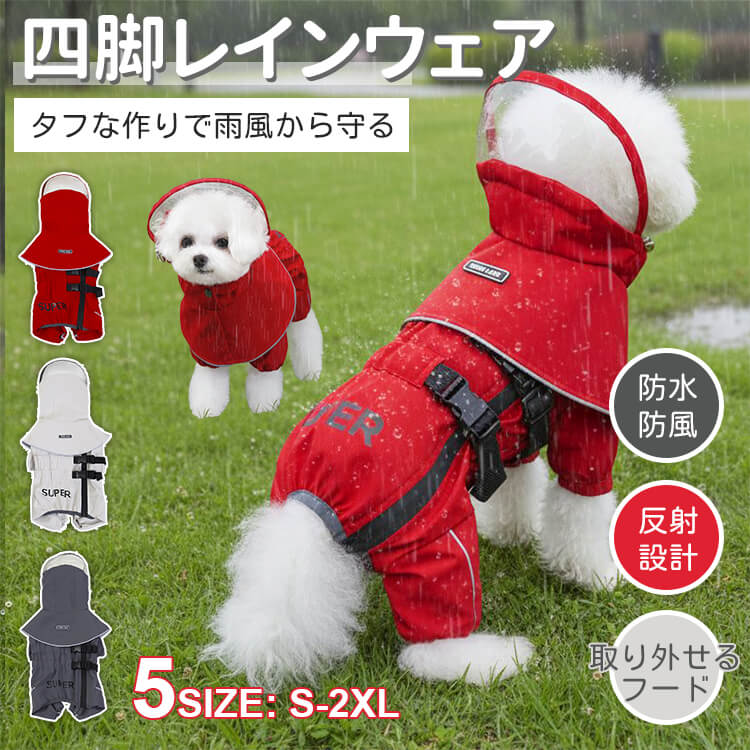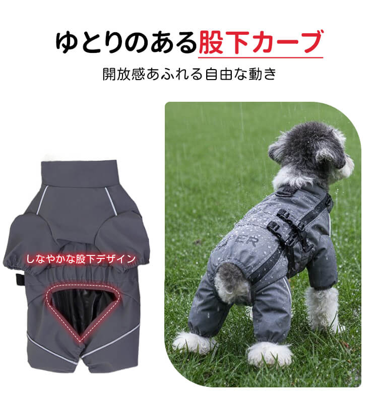 犬用レインコート ハーネス一体型 四脚タイプ 全身カバー 防水 防風 反射材付き 蒸れにくい 快適設計 着脱簡単 フルジップ 動きやすい ゆったり 通気性抜群 S-XXL 小型犬 中型犬 大型犬 春夏秋冬 散歩楽々