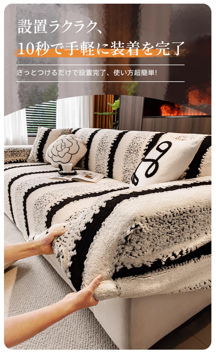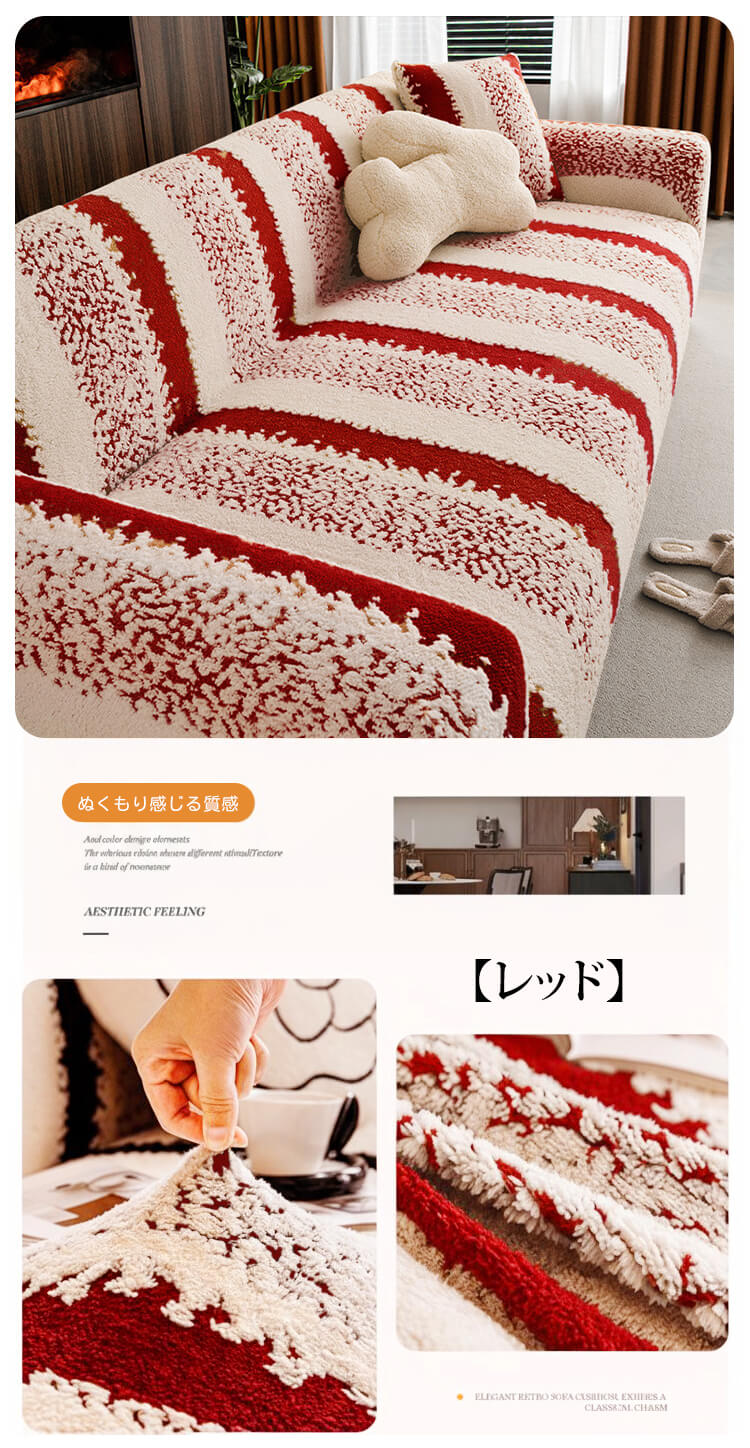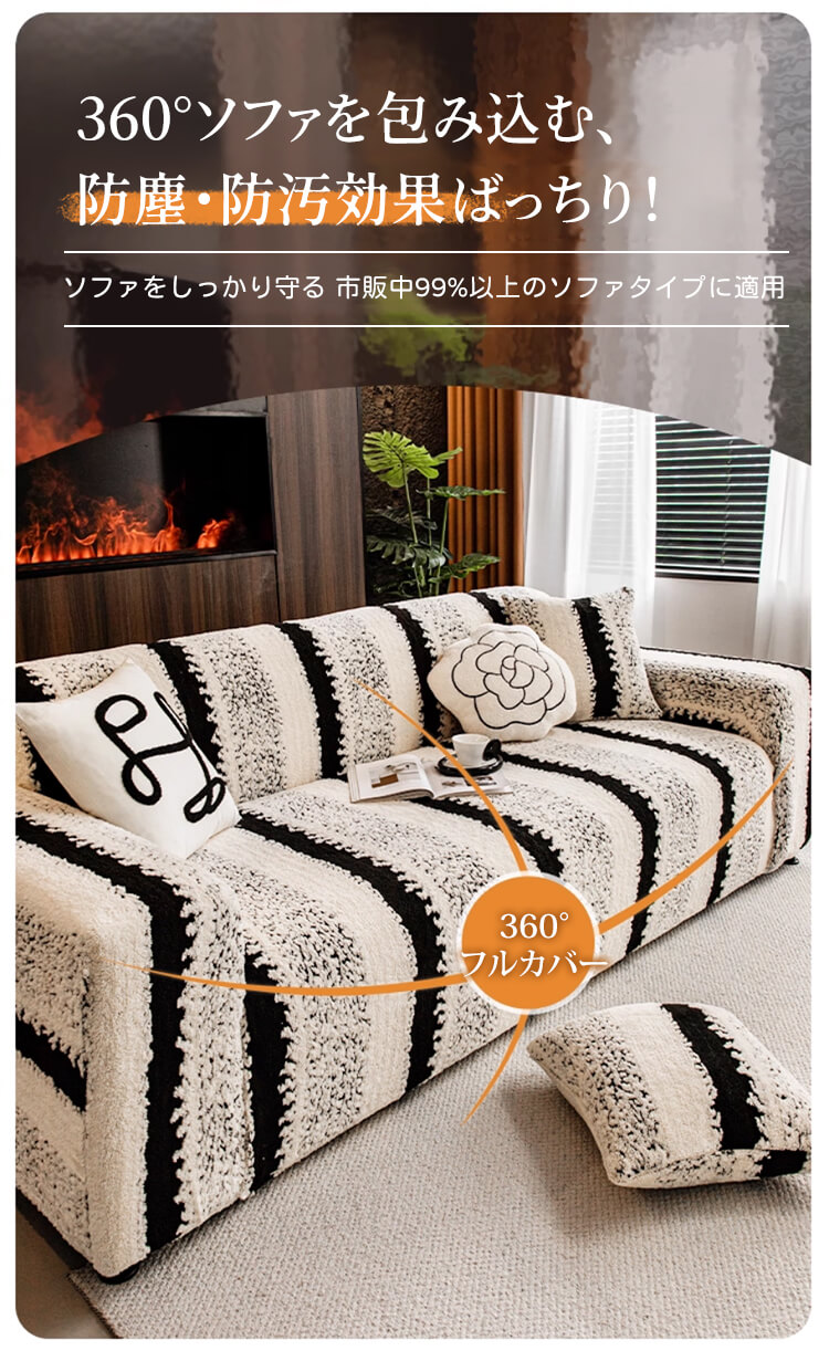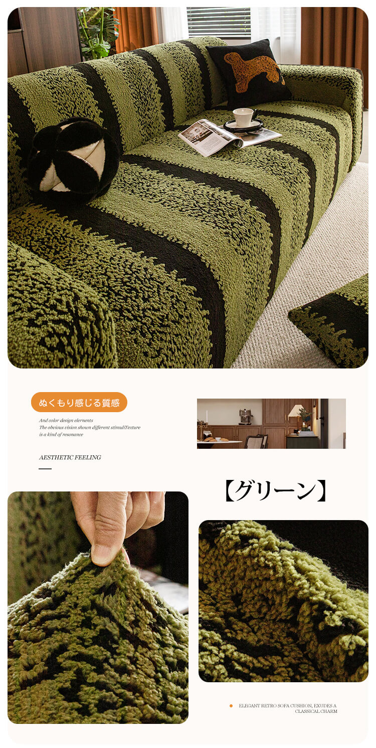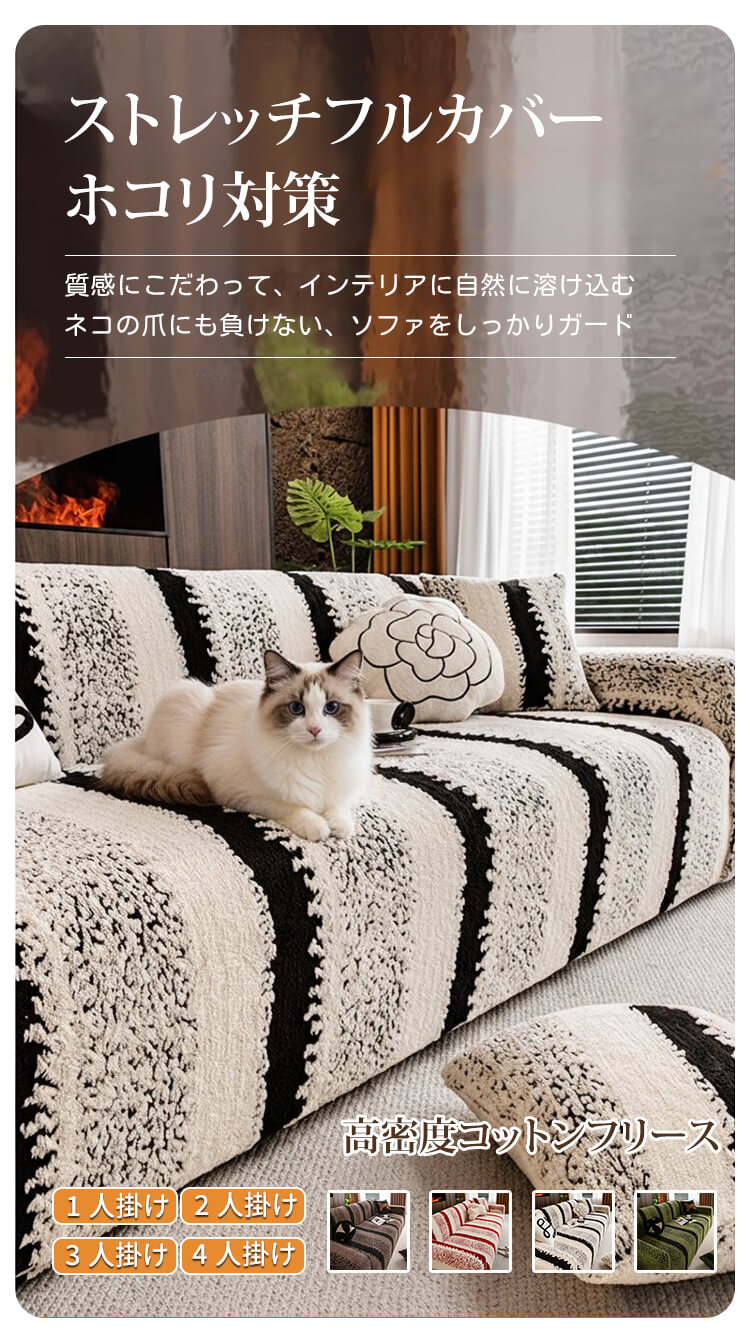 ペットのひっかきに強い高密度ソファカバー クッションカバー付き コットンフリース 厚手なのにムレない 抜け毛・毛玉ゼロ 静電気防止 ストレッチフルカバー 簡単装着 肌に優しい 年中快適 レトロクラシック ホコリ対策 高級感 インテリア
