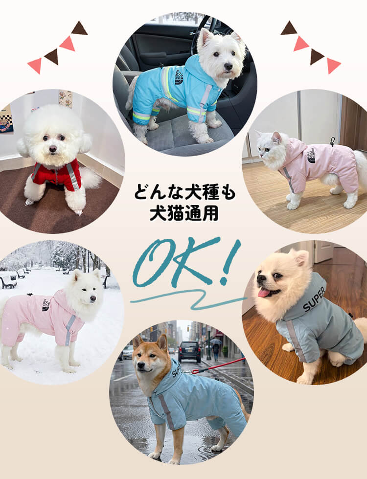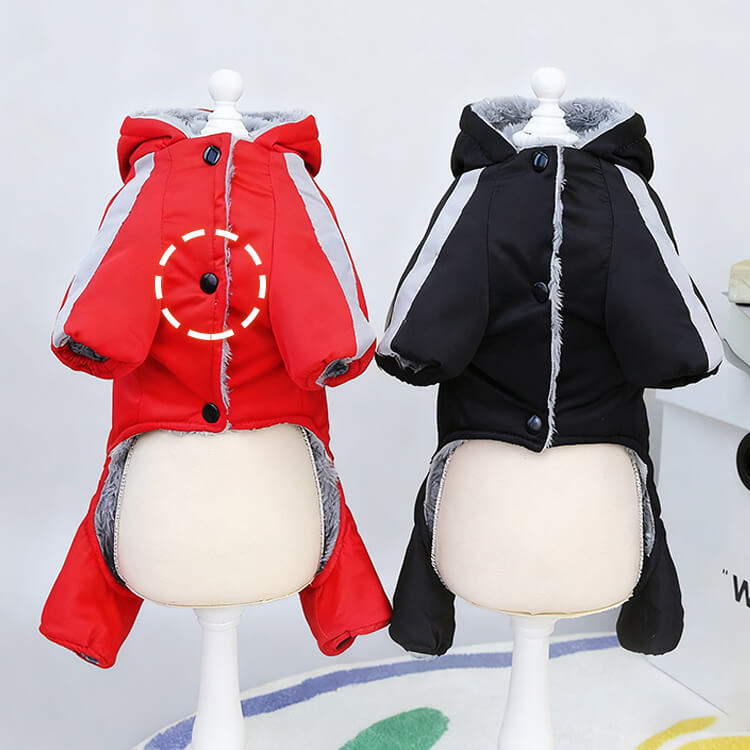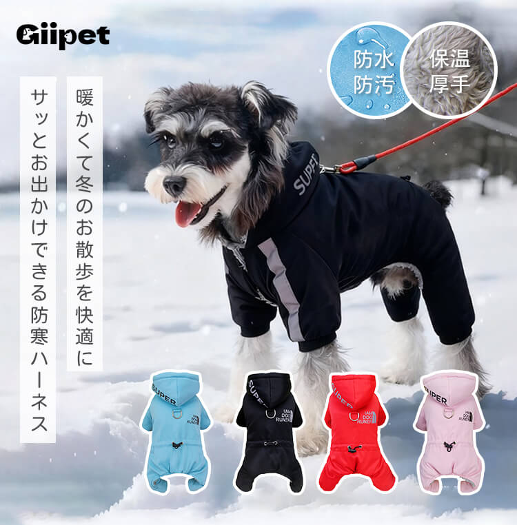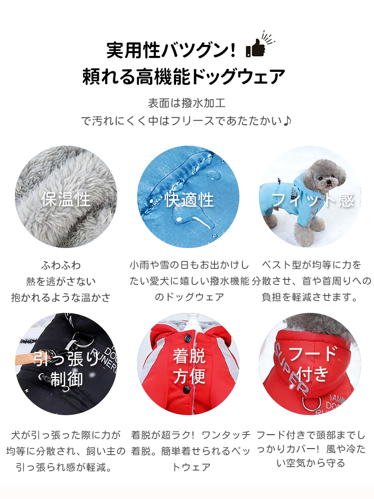 犬用防寒防水ジャケット 秋冬用 極寒対応 ドッグウェア コート アウター 1枚4役 高機能 反射材 リード付き ふわふわ裏起毛 防風 防雪 完全防水 ウォータープルーフ 保温 汚れ防止 泥はね防止 寒さ対策 お散歩 フード付き 小型犬 中型犬 大型犬 S~2XL