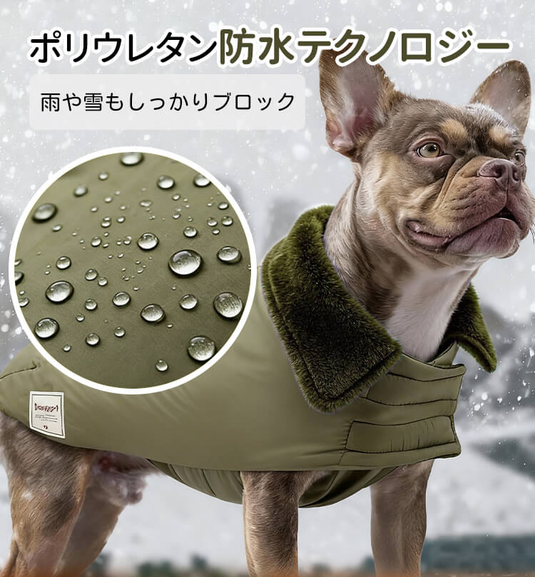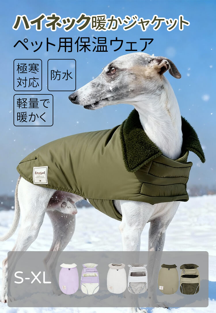 中大型犬用 ハイネック防寒ジャケット ドッグウェア 犬服 冬用 極寒対応 防水 防風 保温力2倍 ふわふわラムスキン調裏起毛 厚手二重キルト ダブル層裏起毛 フリース中綿 着脱簡単 マジックテープ サイズ調節可 フィット感抜群 スリムフィット 動きやすい めくれにくい 尾部ゴム固定 PVCリードホール付き お散歩安全 おしゃれ