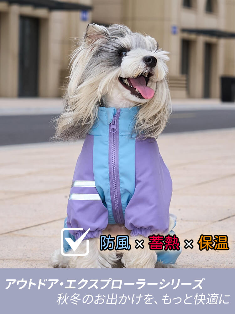 小型犬用 犬服つなぎ 秋冬 裏起毛 ぽかぽか 防寒保温 蓄熱 撥水 防水 防風 防汚 四脚フルカバー リードフック付き ジッパー式で着脱簡単 夜間反射材で夜散歩も安心 動きを邪魔しない ずれにくい ぴったりフィット ドッグウェア