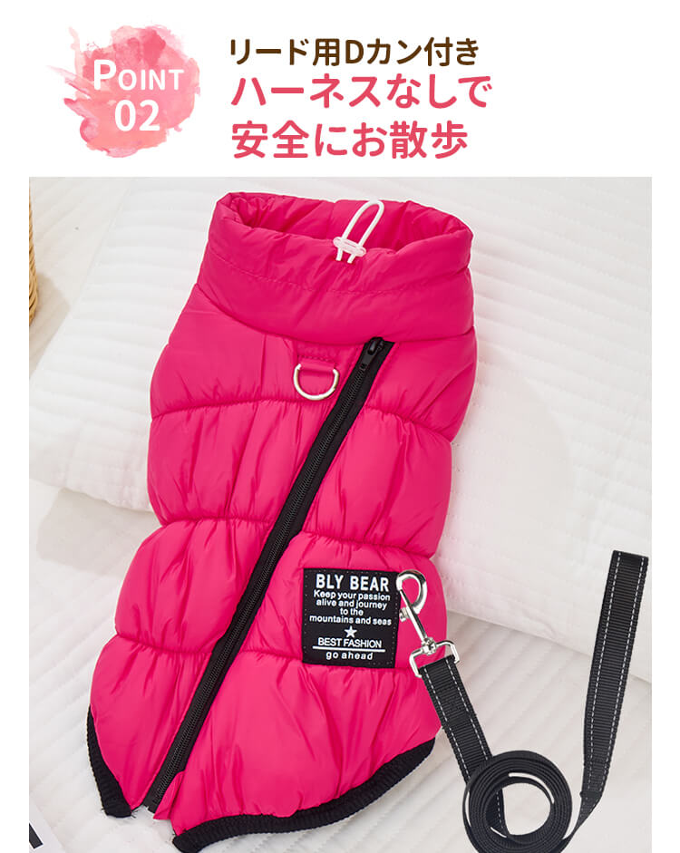犬用 極暖 防寒 ベスト 背中開き 着せやすい 保温 中綿 キルト加工 ドッグウェア 防風 撥水加工 スタンドカラー Dカン付き お散歩便利 毛を挟まないジッパー 抜け毛が付きにくい裏地 動きやすい 小型犬 中型犬
