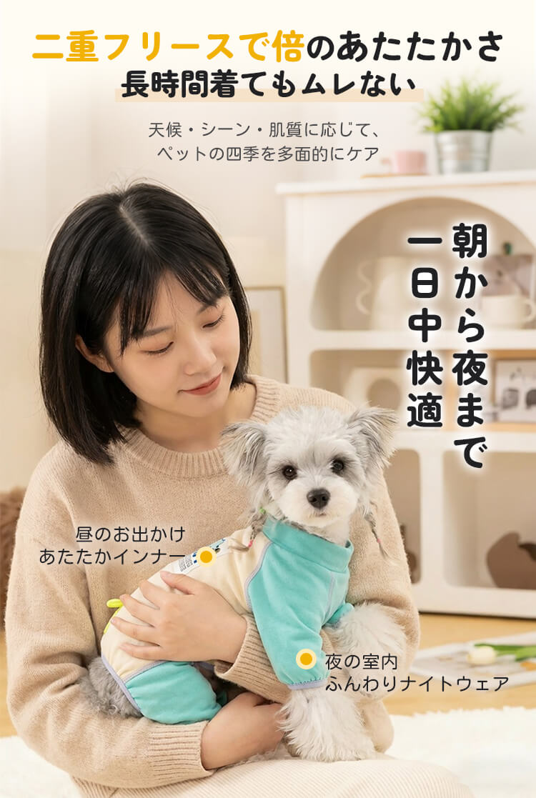 犬用四脚フルカバー発熱ペットウェア デアロン起毛素材使用 ウール約2倍の暖かさ 蓄熱保温・温度ロック 伸縮性抜群でストレスフリー 抗菌防ダニ 静電気抑制 ムレない通気性 犬服 コート 小型犬 中型犬 大型犬 寒さ対策
