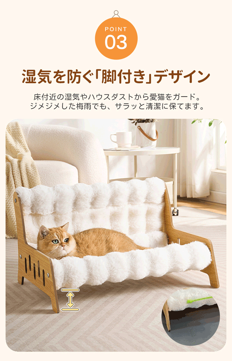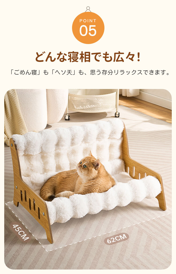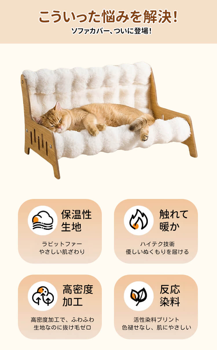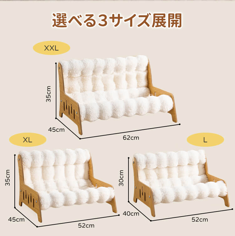 もちふわ猫用ソファベッド 高密度ラビットタッチ 木製フレーム L/XL/XXL 蓄熱保温 暖かい 冬用 もちもち ふわふわ 雲の上のような寝心地 脚付き 湿気・ハウスダスト対策 頑丈 角丸加工 安定感抜群 丸洗いOK 色褪せしない お手入れ簡単 子猫 シニア ぽっちゃり猫使える クッション