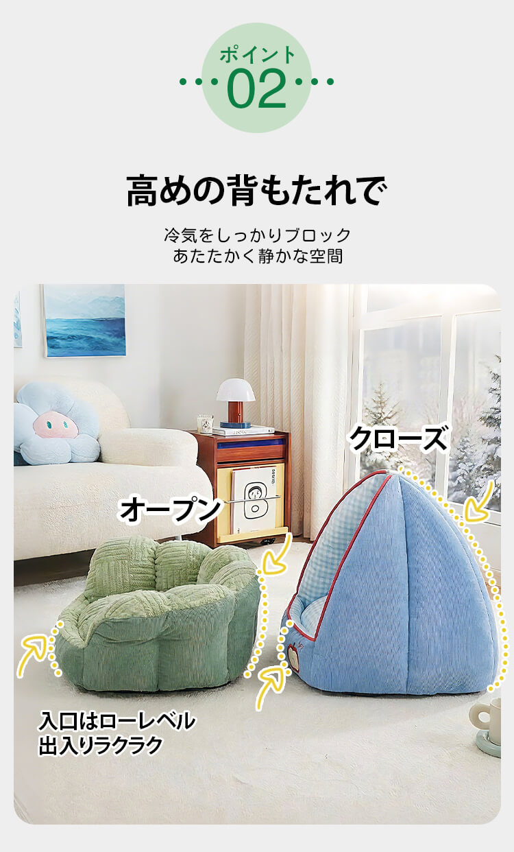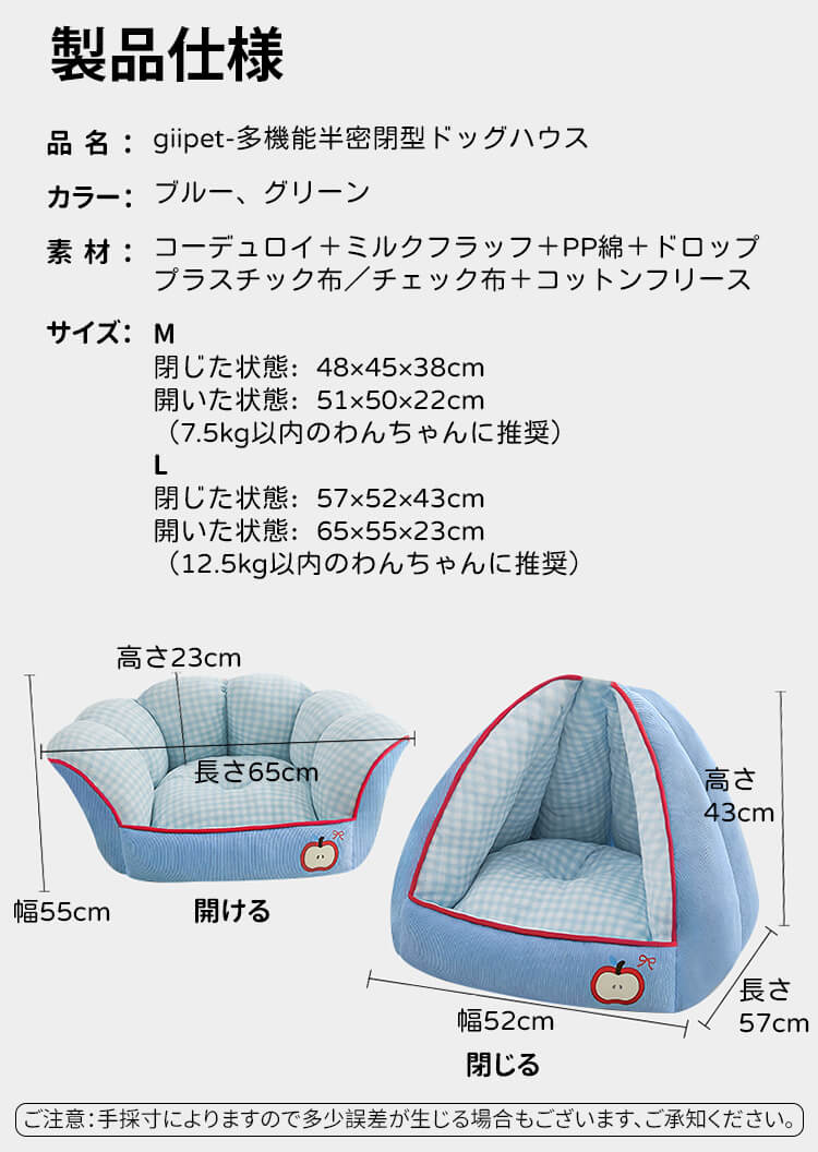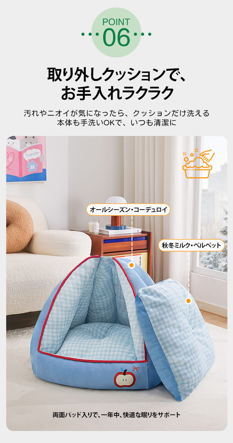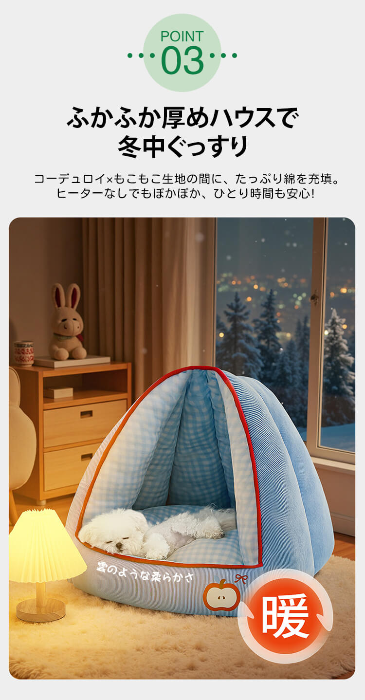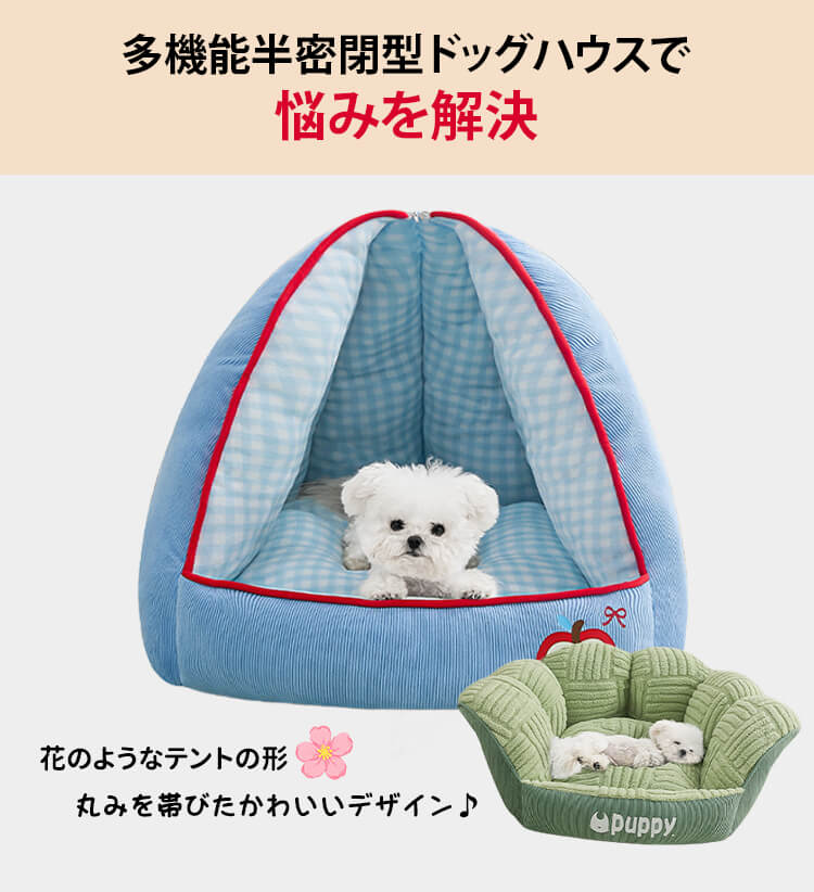 多機能半密閉型ドッグハウス 2WAY変形ペットハウス ペットベッド 秋冬 オールシーズン あったか 保温 ぽかぽか 蓄熱 ふかふか 厚手コーデュロイ 冷気ブロック 洗える 取り外しクッション リラックス 癒し系 犬猫兼用 小型犬 中型犬 滑り止め コンパクト収納 インテリア映え