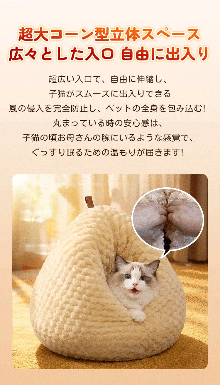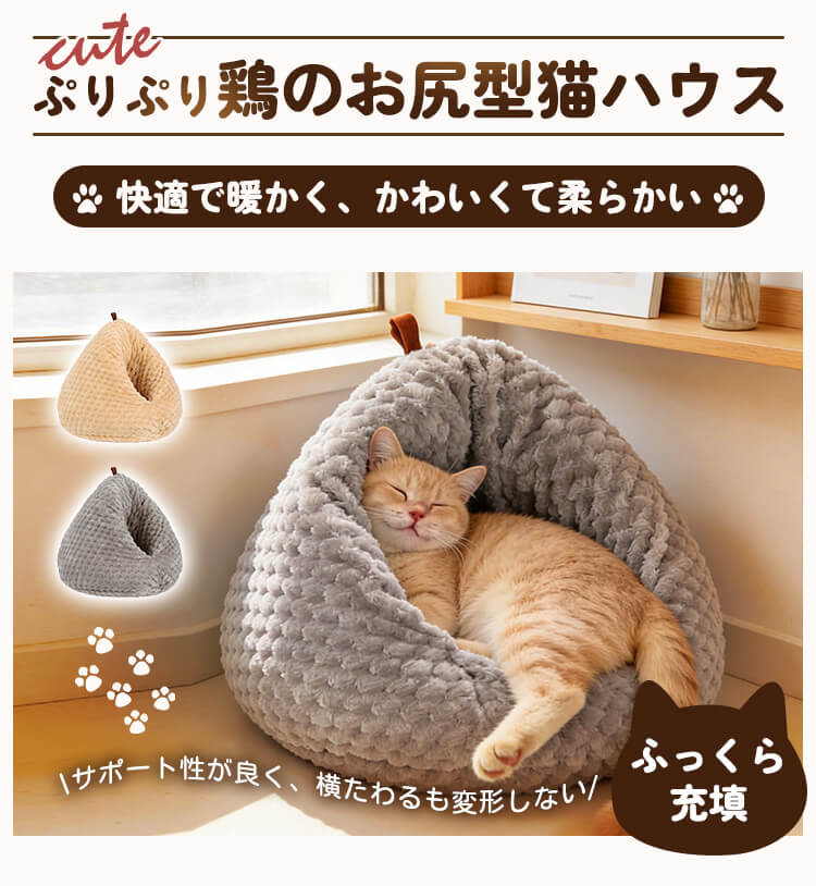 ぷりぷり鶏のお尻形ドームベッド ペットベッド 猫ハウス 犬ベッド 冬用 極厚 短毛フリース ふわもこ 暖かい 保温 防寒 密閉式 体圧分散 高反発 へたりにくい 変形しない 広々深型 大容量 10kg以内 小型犬 大型猫 手提げ 移動簡単 ぐっすり眠れる安心感