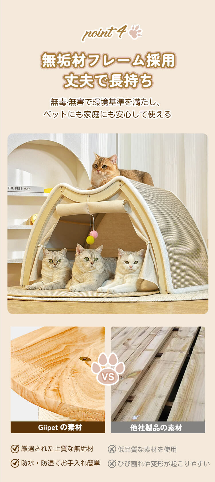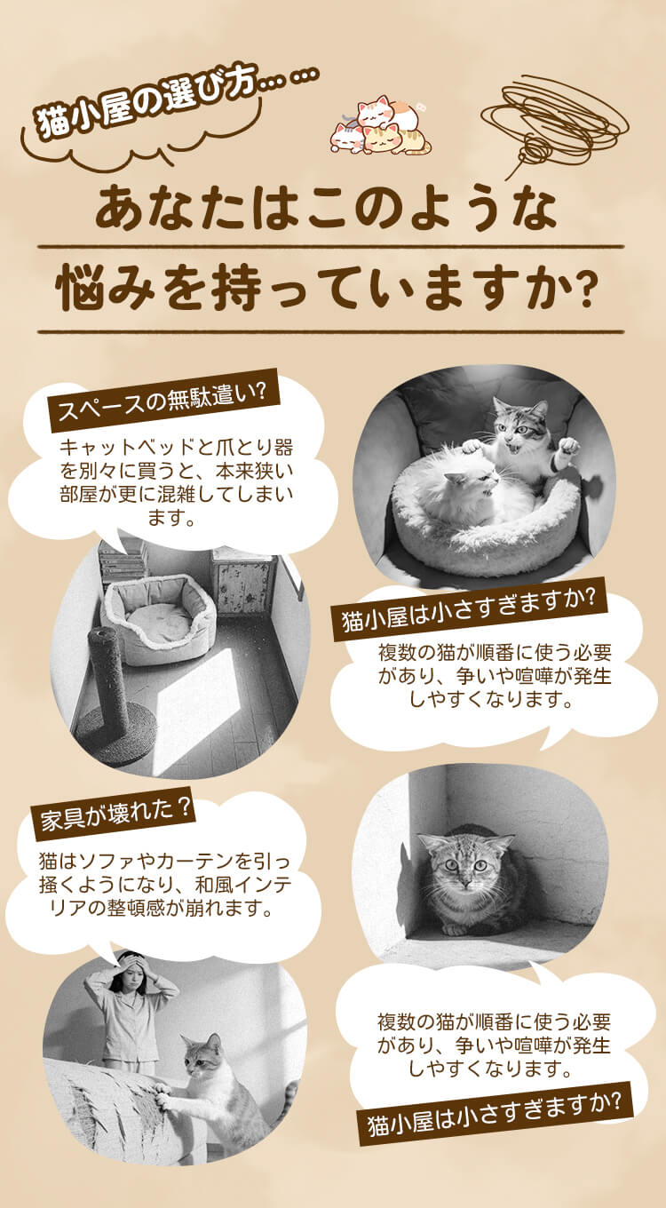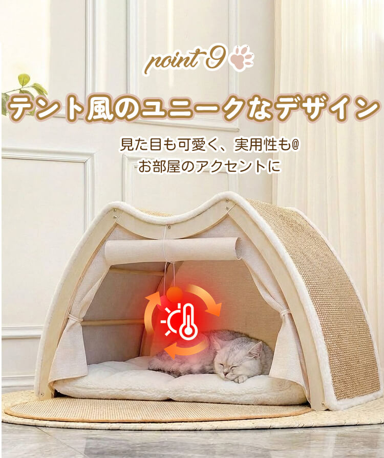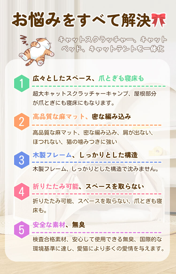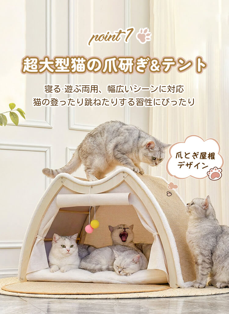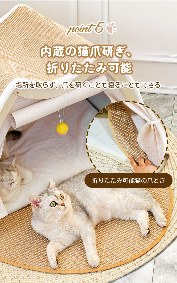 猫用多機能キャットベッド&スクラッチャー 一体型 3WAY 猫小屋 木製フレーム 折りたたみ可能 広々としたスペース 爪とぎも寝床も 4kg~10kg 多頭飼い対応 無臭 高品質天然麻 防水 防湿