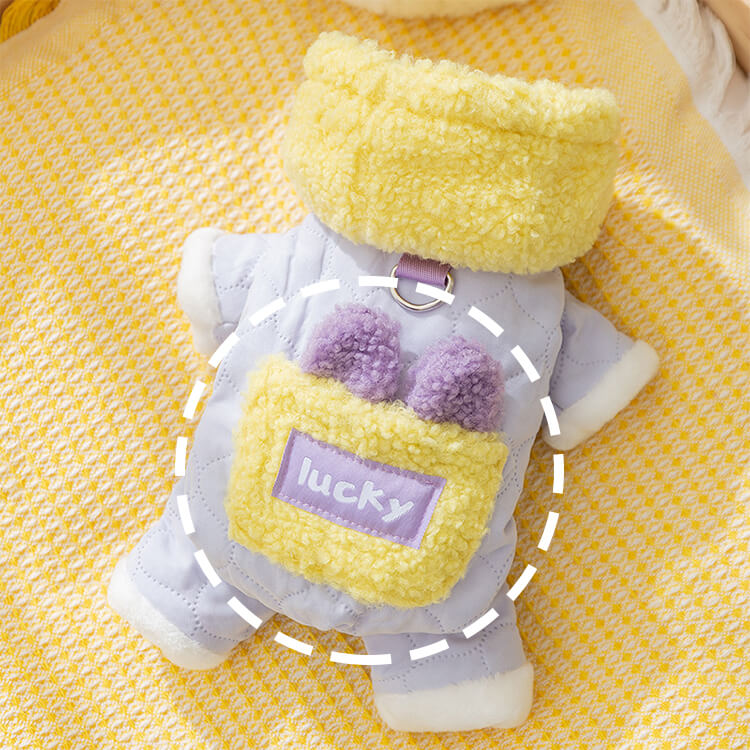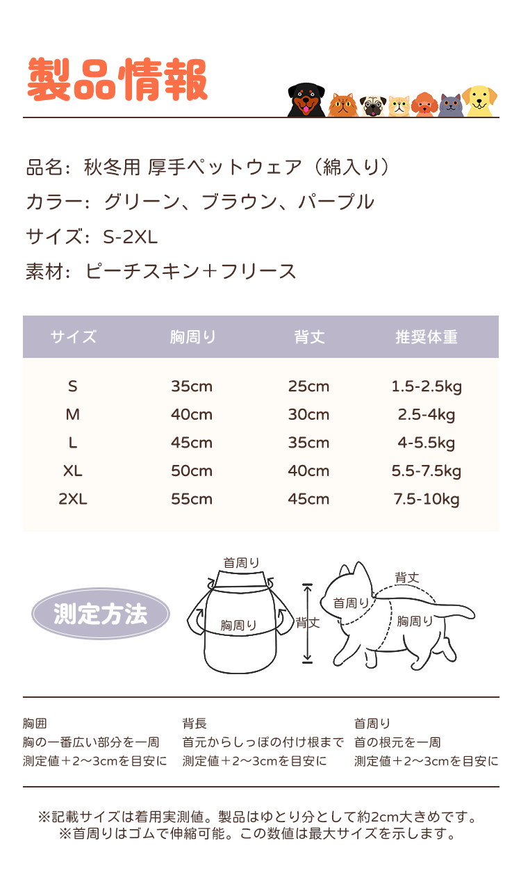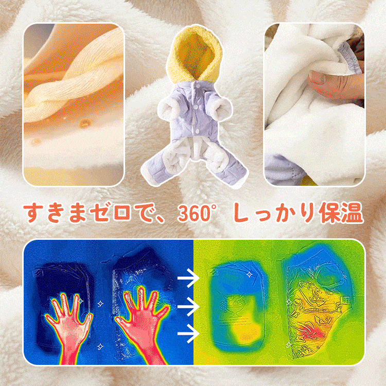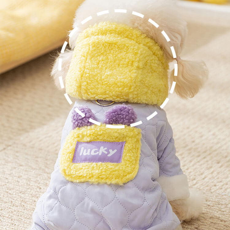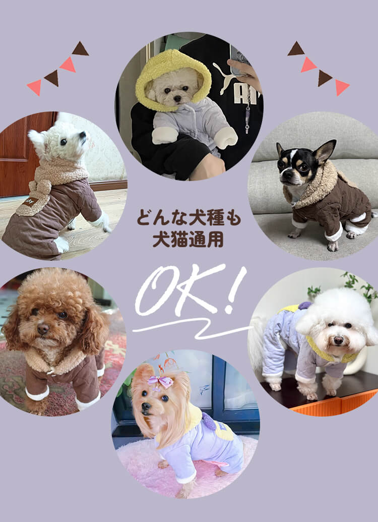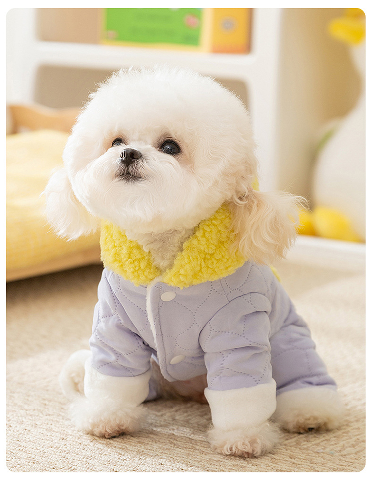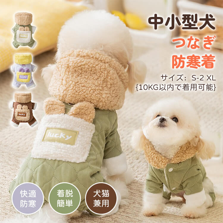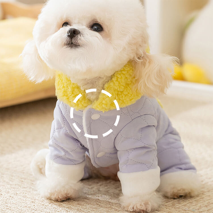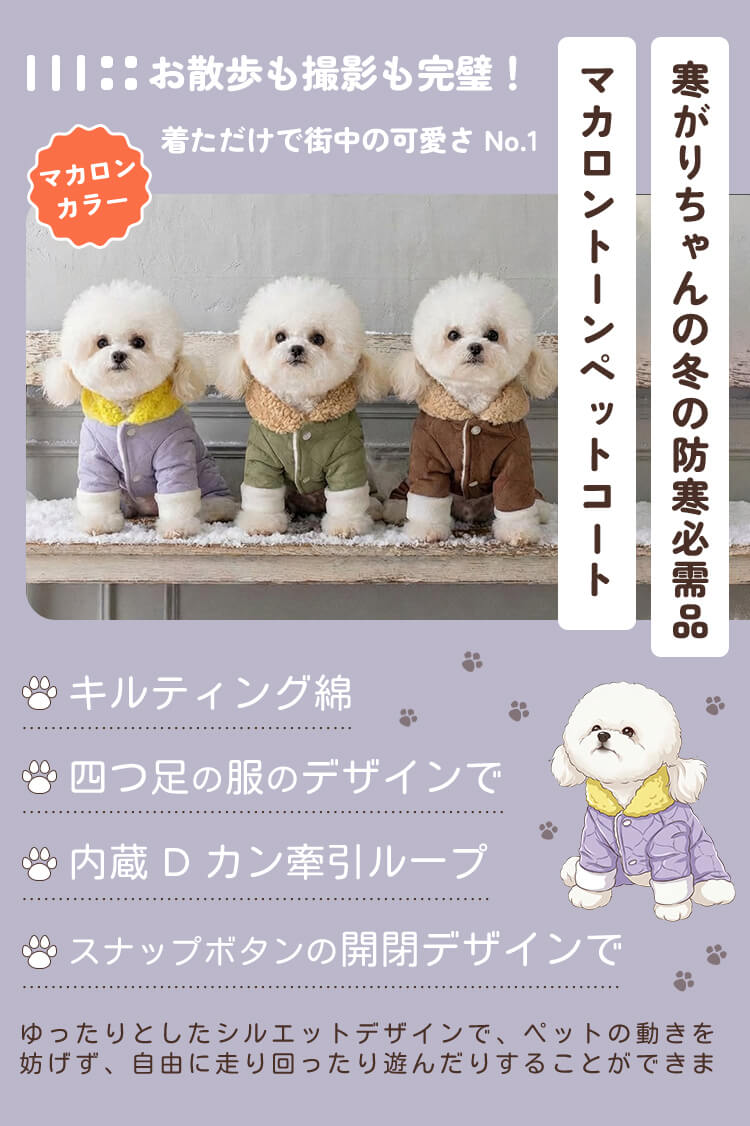 マカロンカラー秋冬用厚手ペットウェア 四足フルカバー 犬猫兼用 キルティングコート 秋冬 厚手 綿入り フリース裏地 蓄熱保温 防水 防風 -5℃対応 着たままトイレOK Dカン付き スナップボタン 着脱簡単 洗濯機OK 中小型犬 寒さ対策