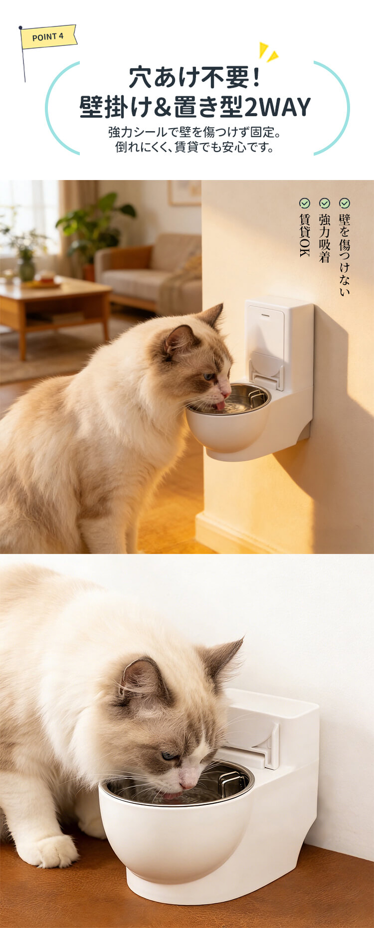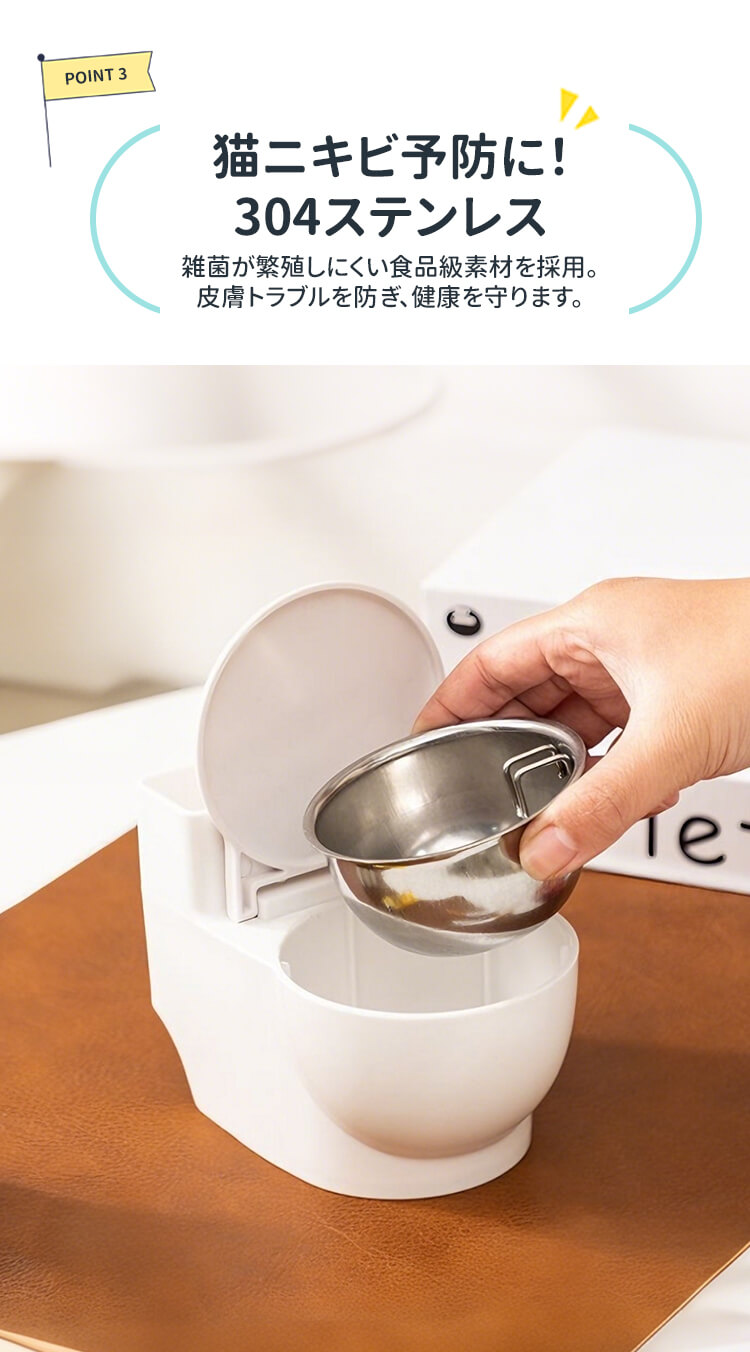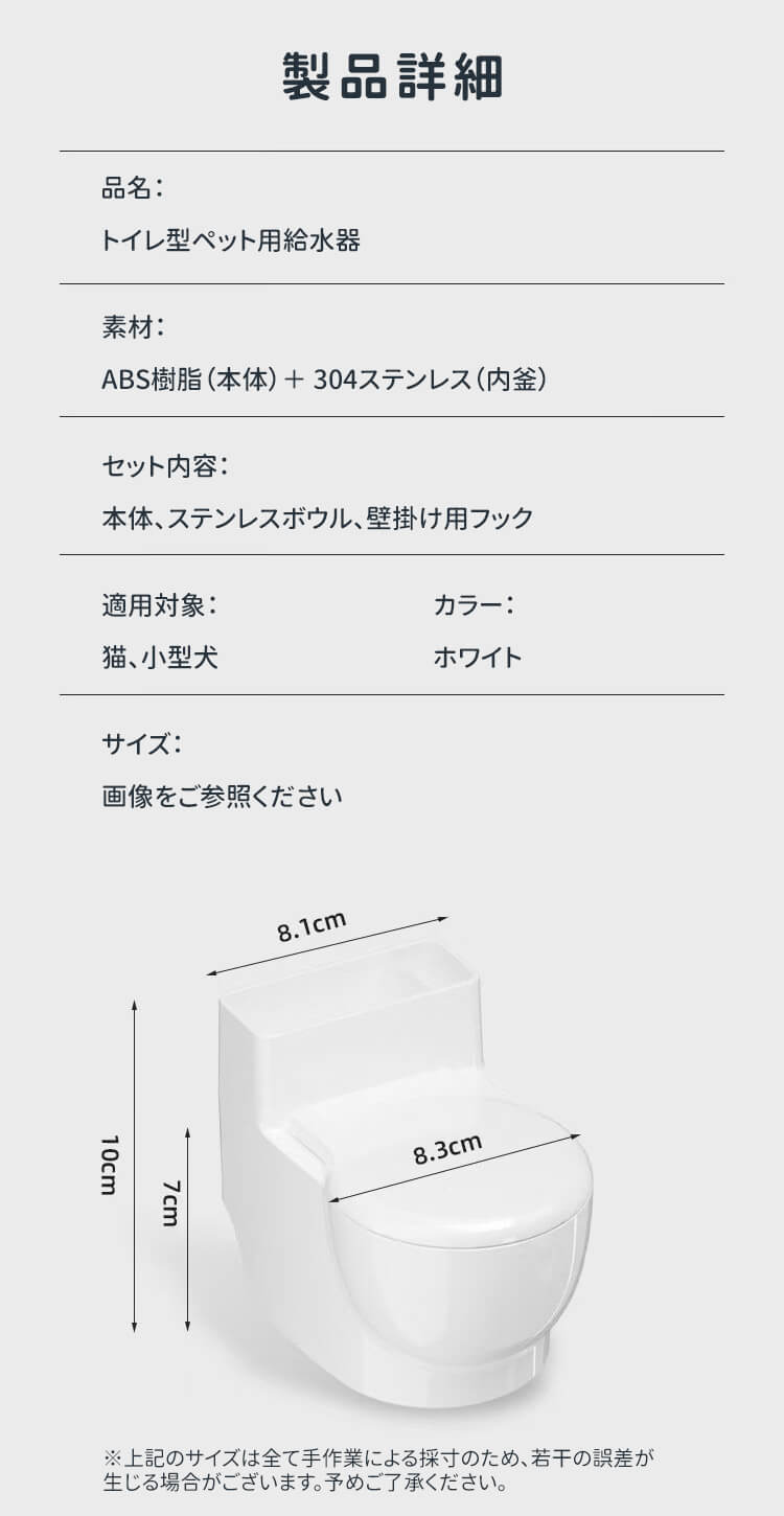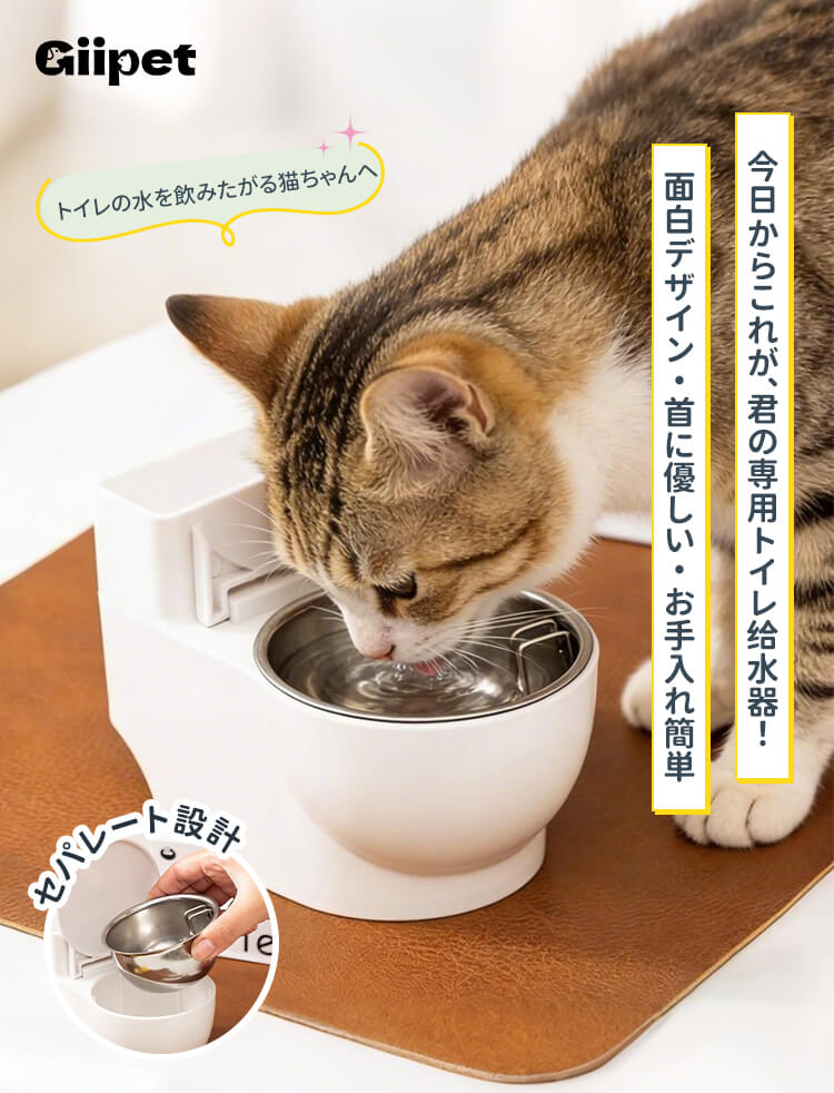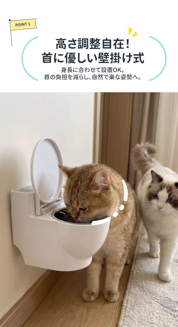 トイレ型 猫専用給水器 首に優しい高さ調整式 ステンレス製 セパレート設計でお手入れ簡単 猫ニキビ予防 トイレの水を飲む癖対策 壁掛け&置き型2WAY 穴あけ不要 賃貸OK