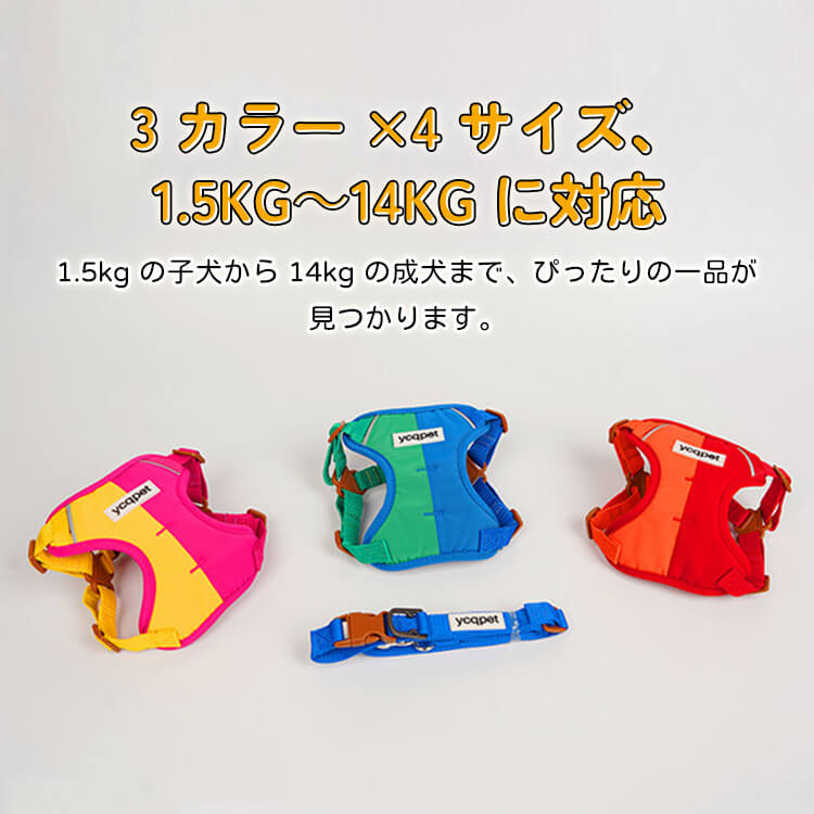 犬 ハーネス 胴輪 ペット用 反射材付き 夜道も安心 通气性 クッション性 負担軽減 引っ張り防止 4つの調整バックル 衝撃吸収 丈夫 ナイロン素材 小型犬 中型犬 大型犬 アウトドア 四季適用