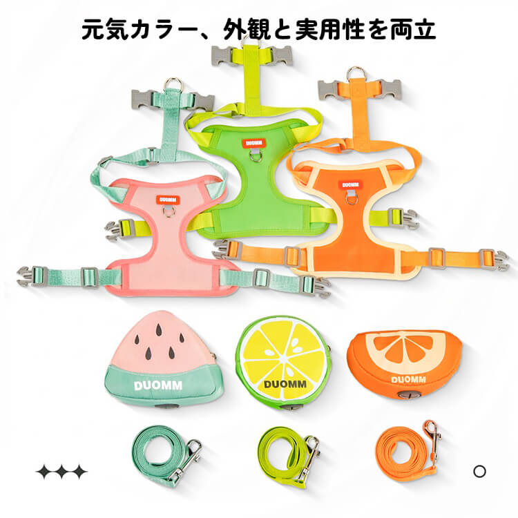 犬用ハーネス リュック付き フルーツ柄 取り外し可能 胴輪 通気性 メッシュ マナー袋出し口付き 小物入れ 散歩 負担軽減 かわいい おしゃれ 小型犬 中型犬 猫 抜けにくい ペット用品