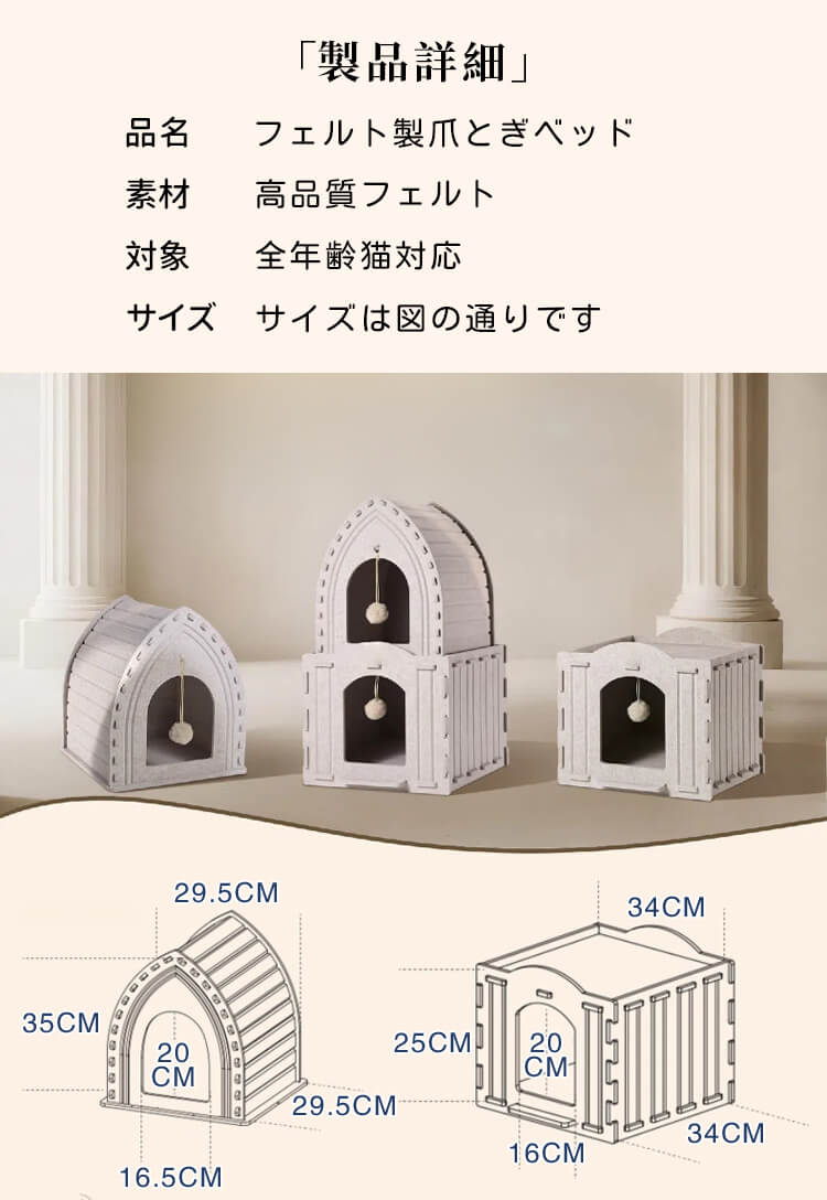 猫用ハウス キャットハウス 2段ベッド フェルト製 爪とぎ 隠れ家 落ち着く 暗さ リラックス 多頭飼い 遊び場 摩耗に強い 丈夫 傷防止 簡単組立 爪研ぎボード 室内 キャット用品