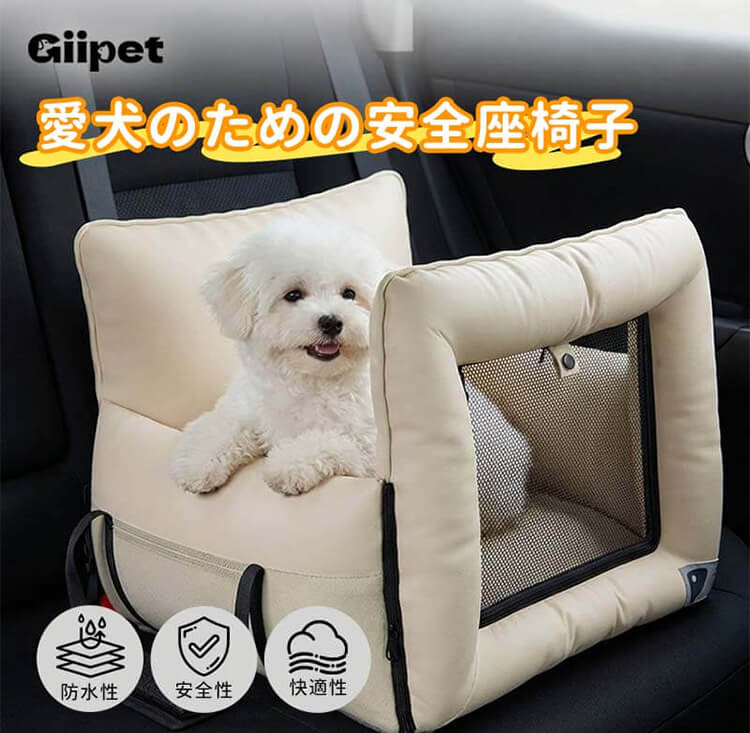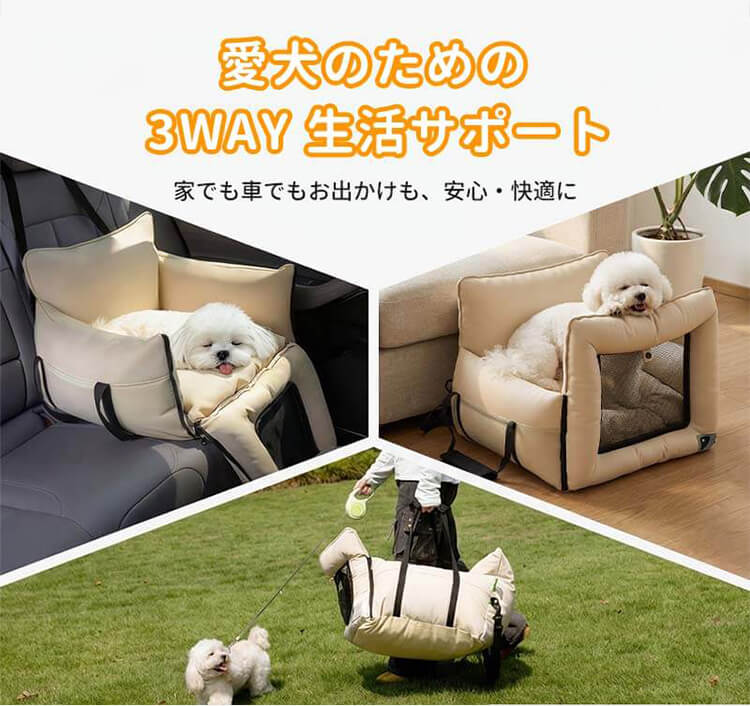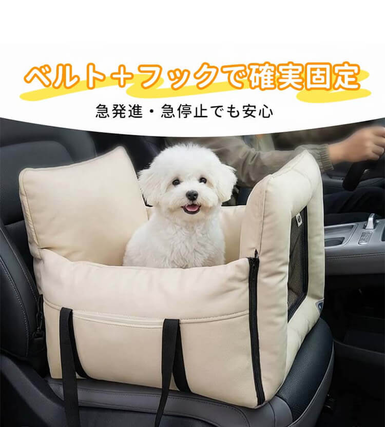ドライブボックス ペット用 3WAY 車載ベッド ファーストクラスの乗り心地 車酔い軽減 振動吸収 高反発 飛び出し防止 固定ベルト付き 急発進・急停止も安心 サイドポケット付き 通気性メッシュ お手入れ簡単 清洁 小型犬 猫