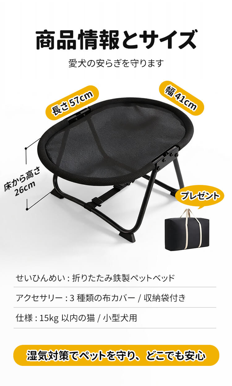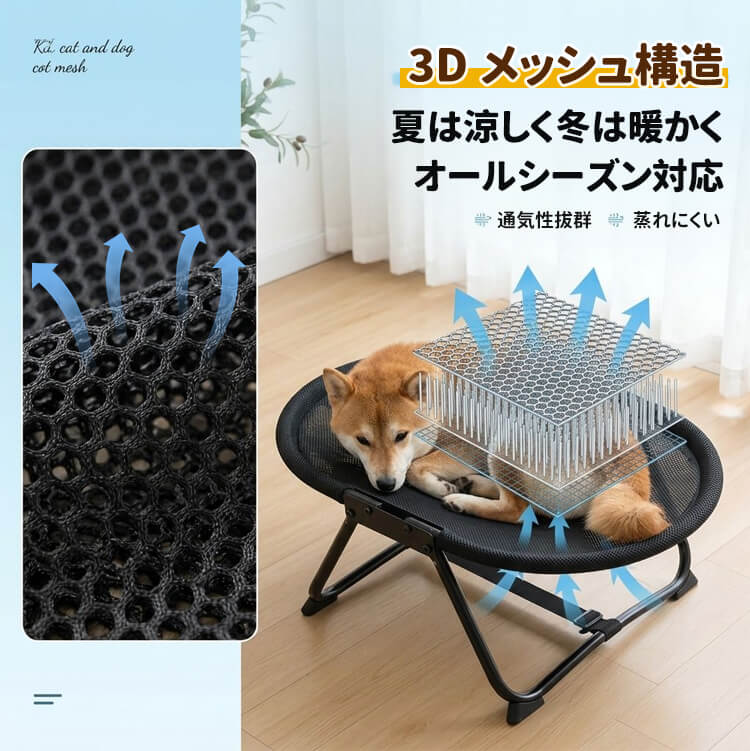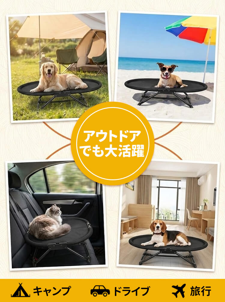 折りたたみ式ペットベッド キャンプ用 高床式コット 通气性 湿気除け カビ防止 コンパクト収納 持ち運び简单 室内 屋外 アウトドア レジャー 小型犬 中型犬 猫対応 全季節対応 丈夫な設計 避難用