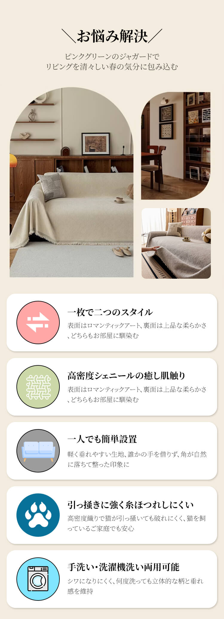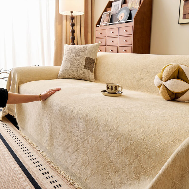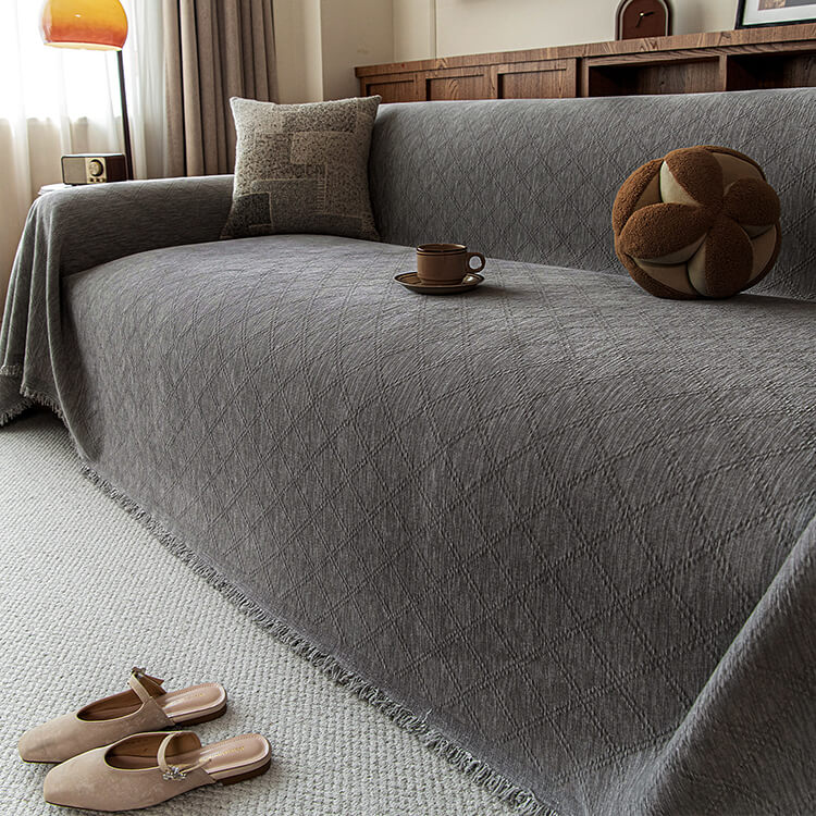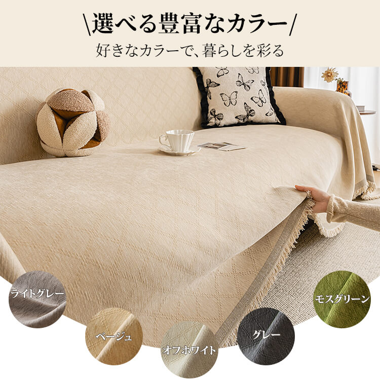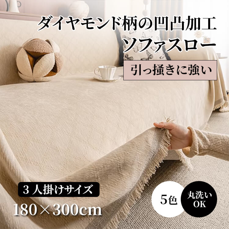 ダイヤモンド柄 ソファスロー 凹凸加工 3人掛け ジャガード織り マルチカバー シェニール 厚手 引っ掻きに強い 爪とぎ防止 汚れ防止 リバーシブル 北欧 おしゃれ 肘あり 肘なし 春夏秋冬 丸洗いOK 5色展開