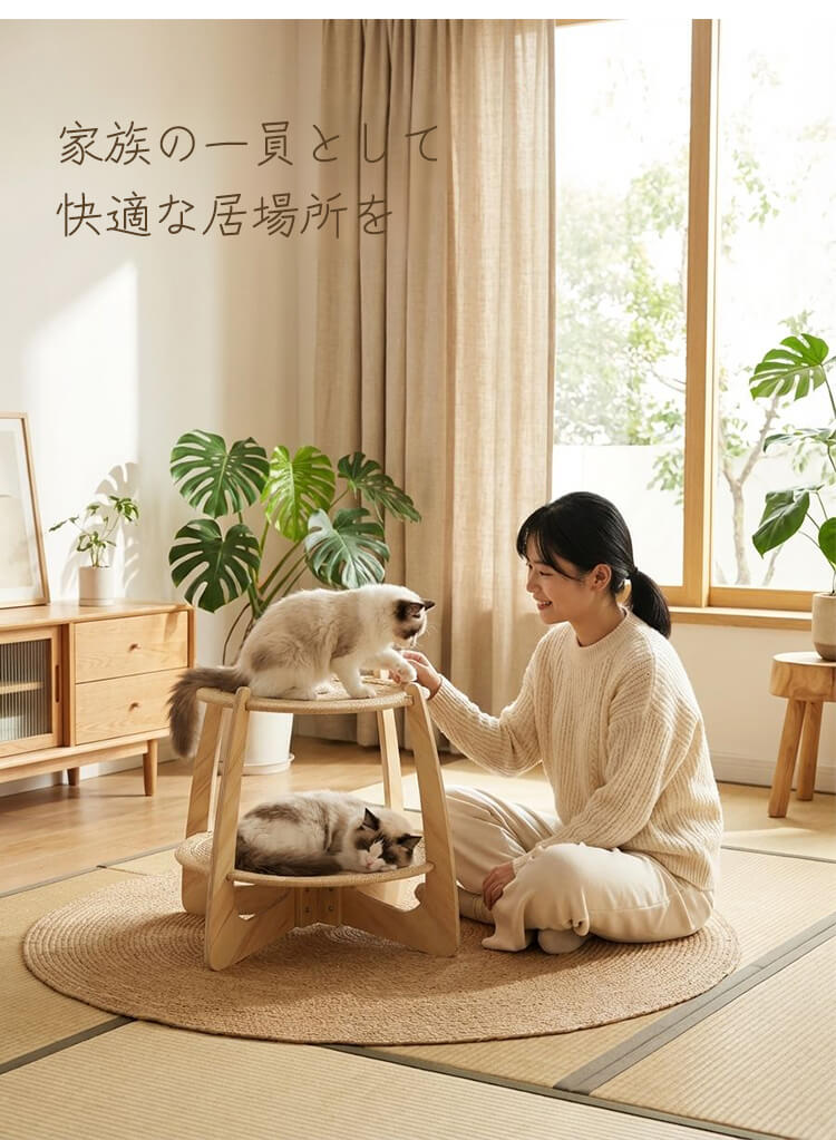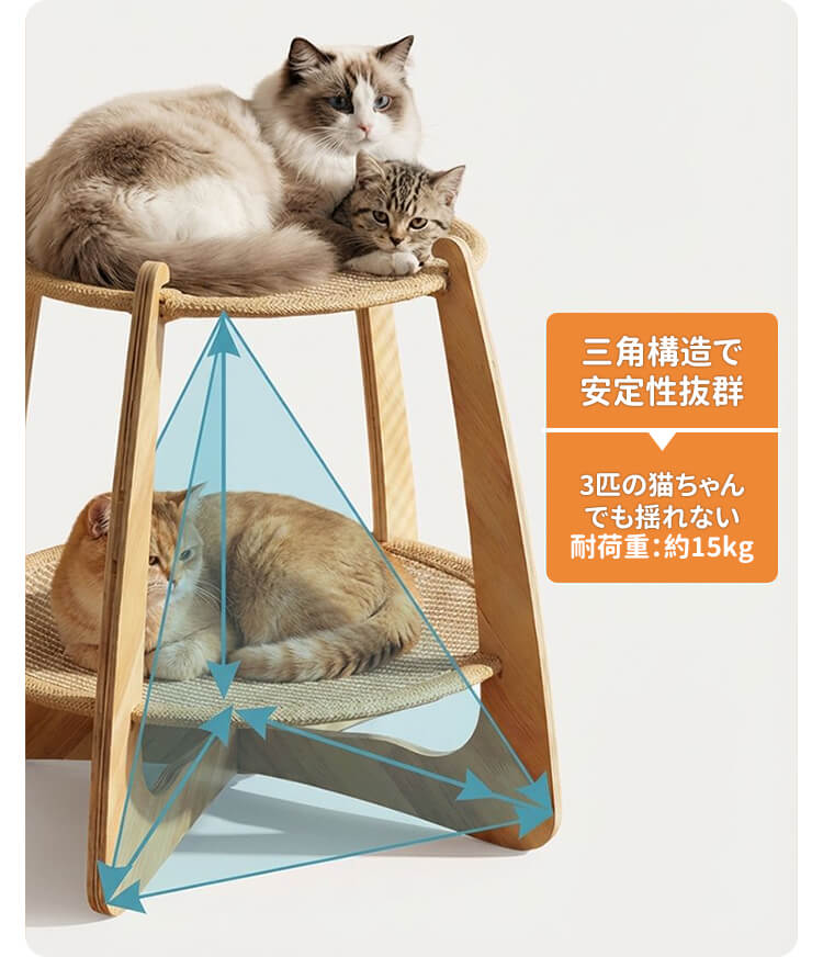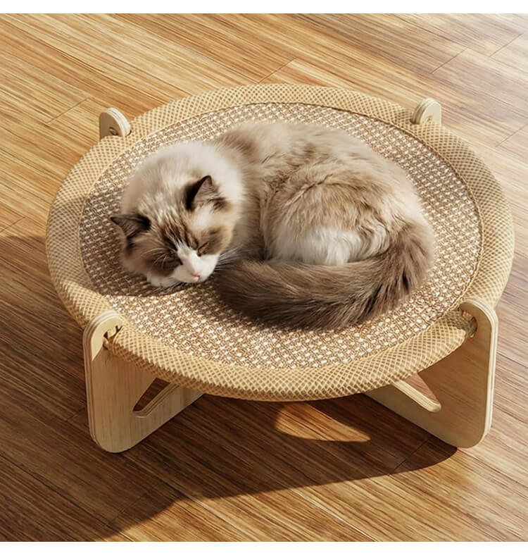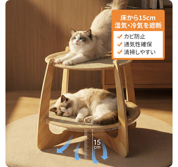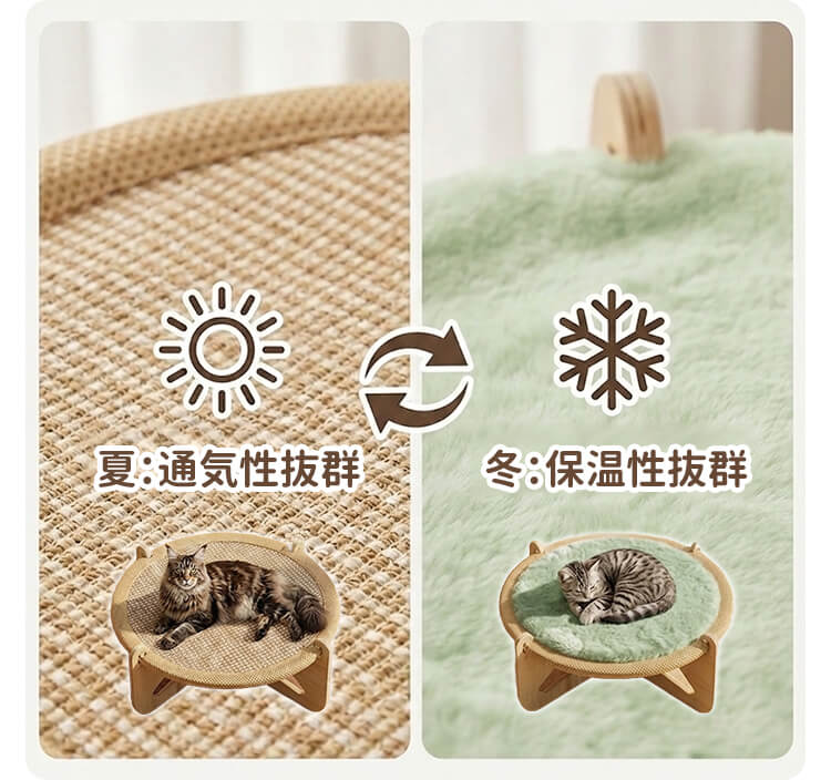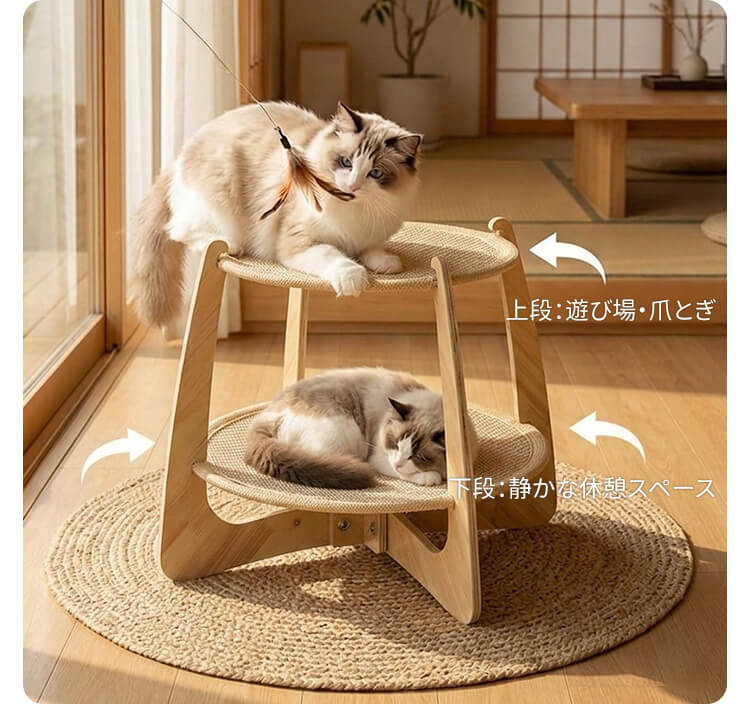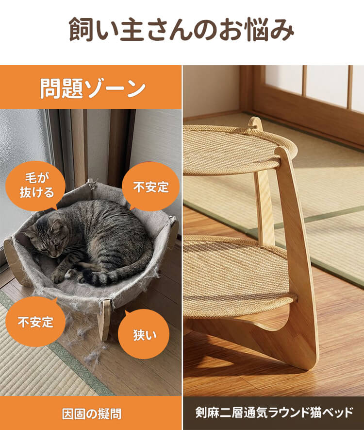 円台ペットベッド 剣麻二層通気 猫 爪とぎ 二段ベッド 木製 天然サイザル麻 通気性抜群 四季通用 両面使用 おやすみ 安定性 多头饲い対応 頑丈 おしゃれ インテリア 3サイズ展开 スモール/ラージ/2段